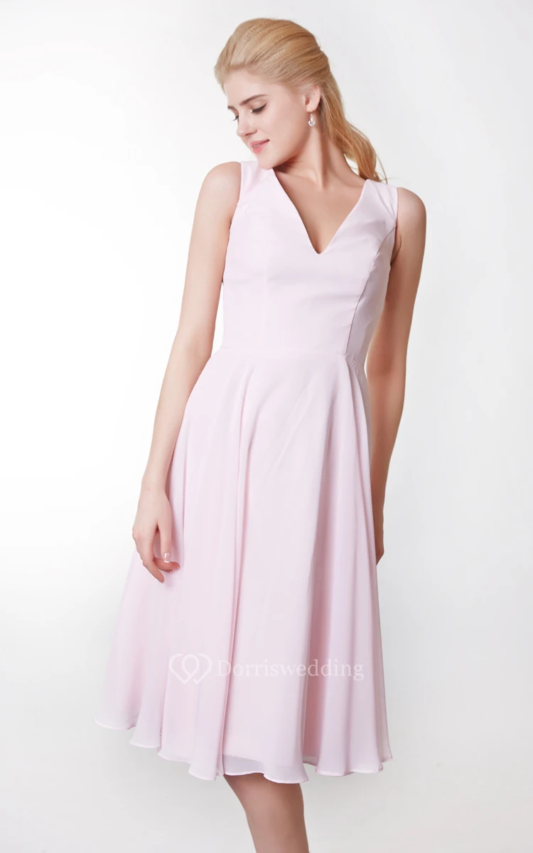 Simple Style V-neck A-line Tea Length Dress