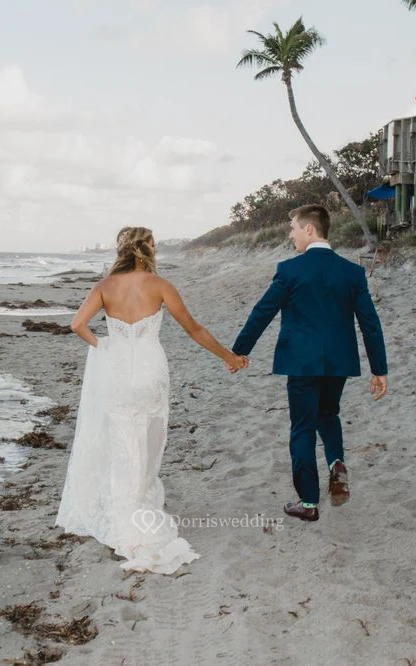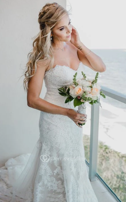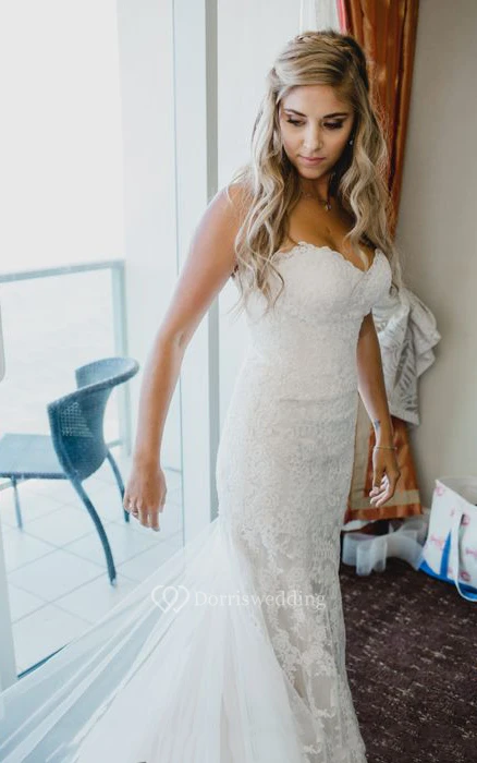 Simple Sweetheart Neck Sleeveless Empire Lace Mermaid Wedding Dress with Court Train