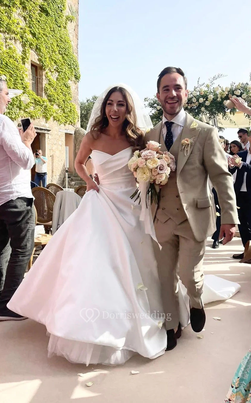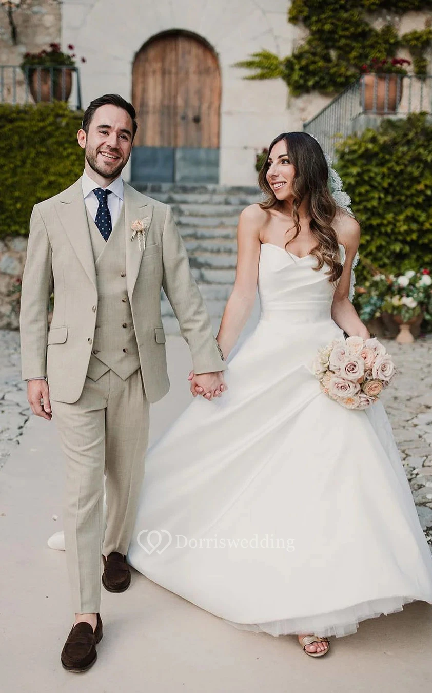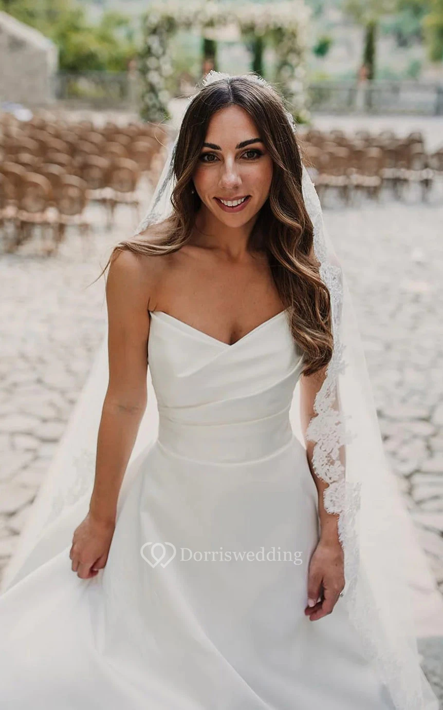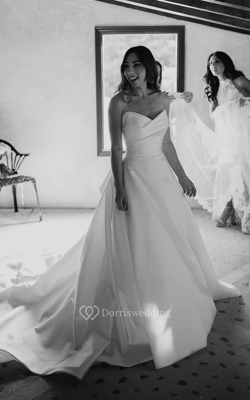 Simple Sweetheart Satin Side-Draped A-line Solid Wedding Dress