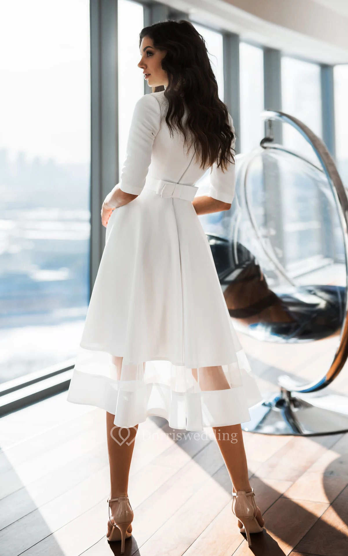 • Hemline/Train: Tea-length