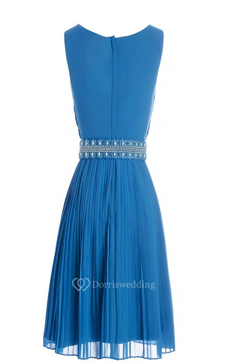 Simple V-neck Pleated A-line Gown With Beaded Band