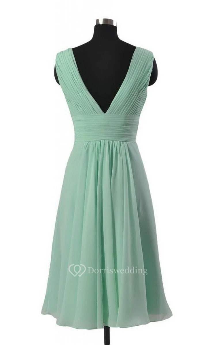 Simple V-neck Pleated A-line Gown With Ruched Band