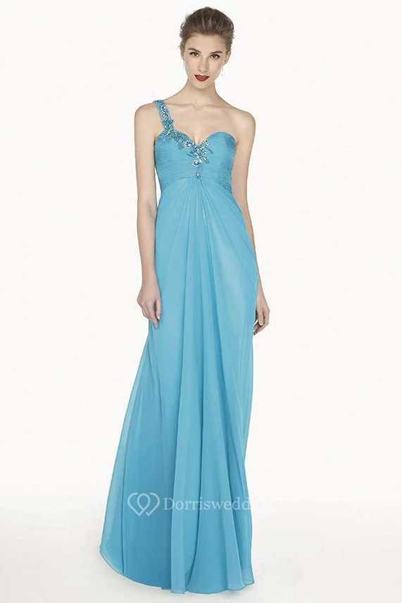Single Crystal Strap A-Line Chiffon Long Prom Dress With Waist Keyhole
