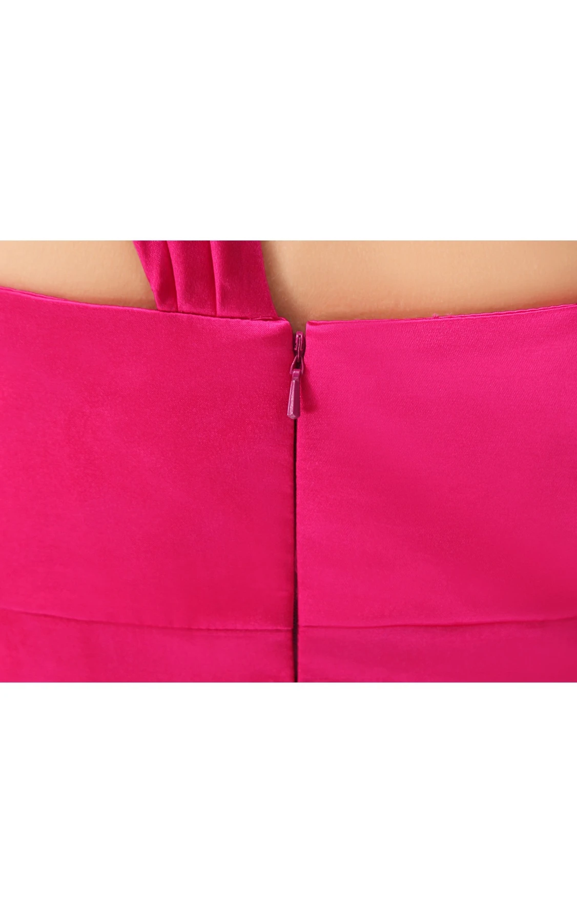 Single-Strap Ankle-Length Satin Dress With Ruching