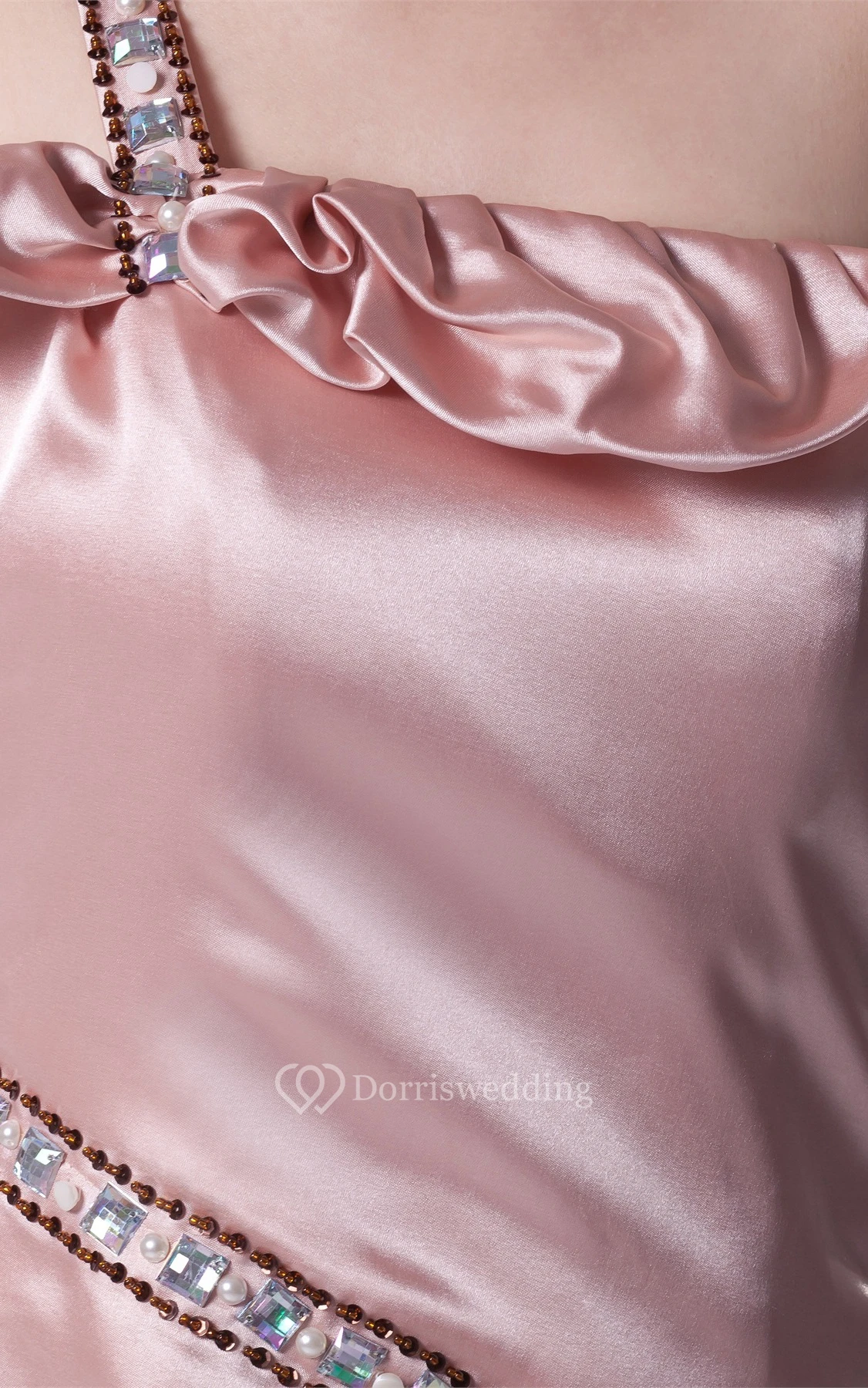 Single-Strap Maxi Front-Split Beading and Dress With Ruching