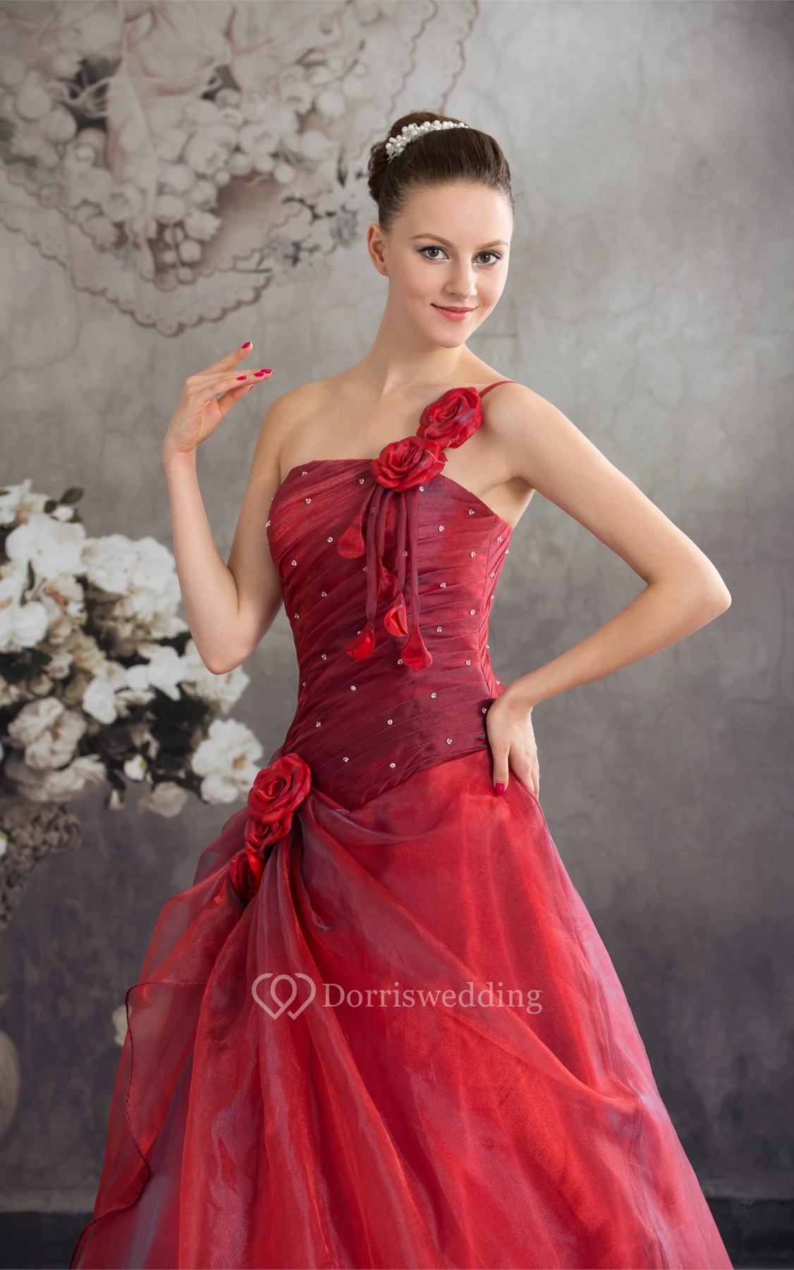 Single-Strap Ruched Sleeveless Stress and Ball-Gown With Flower
