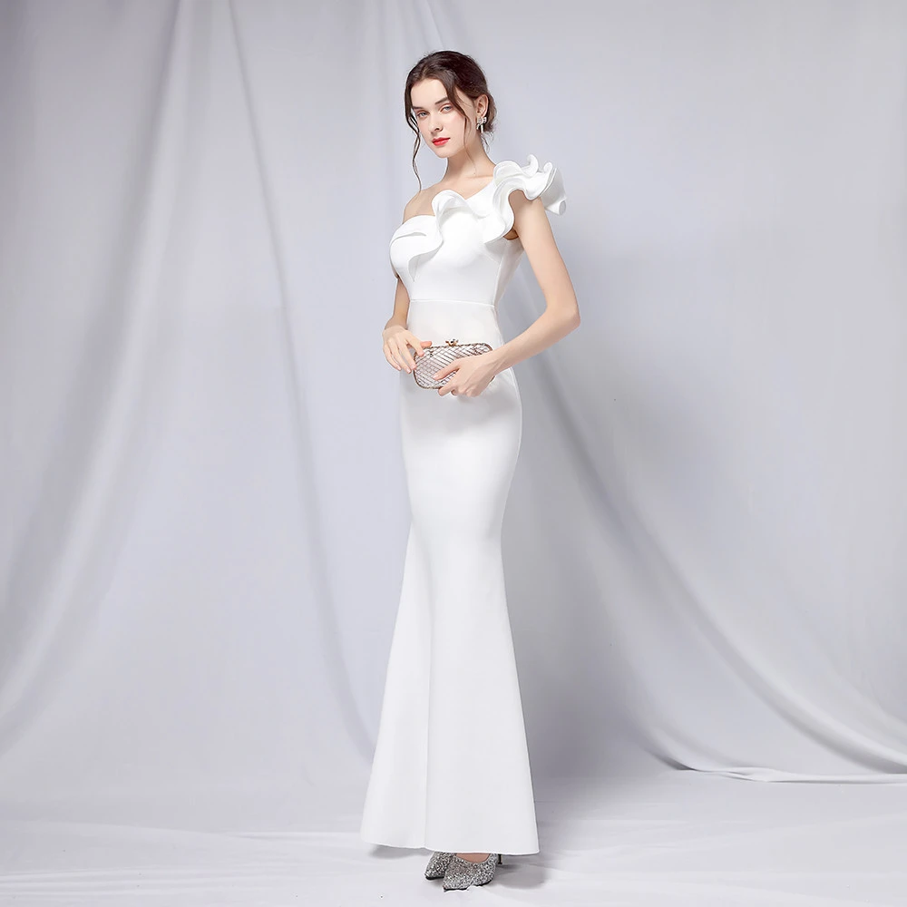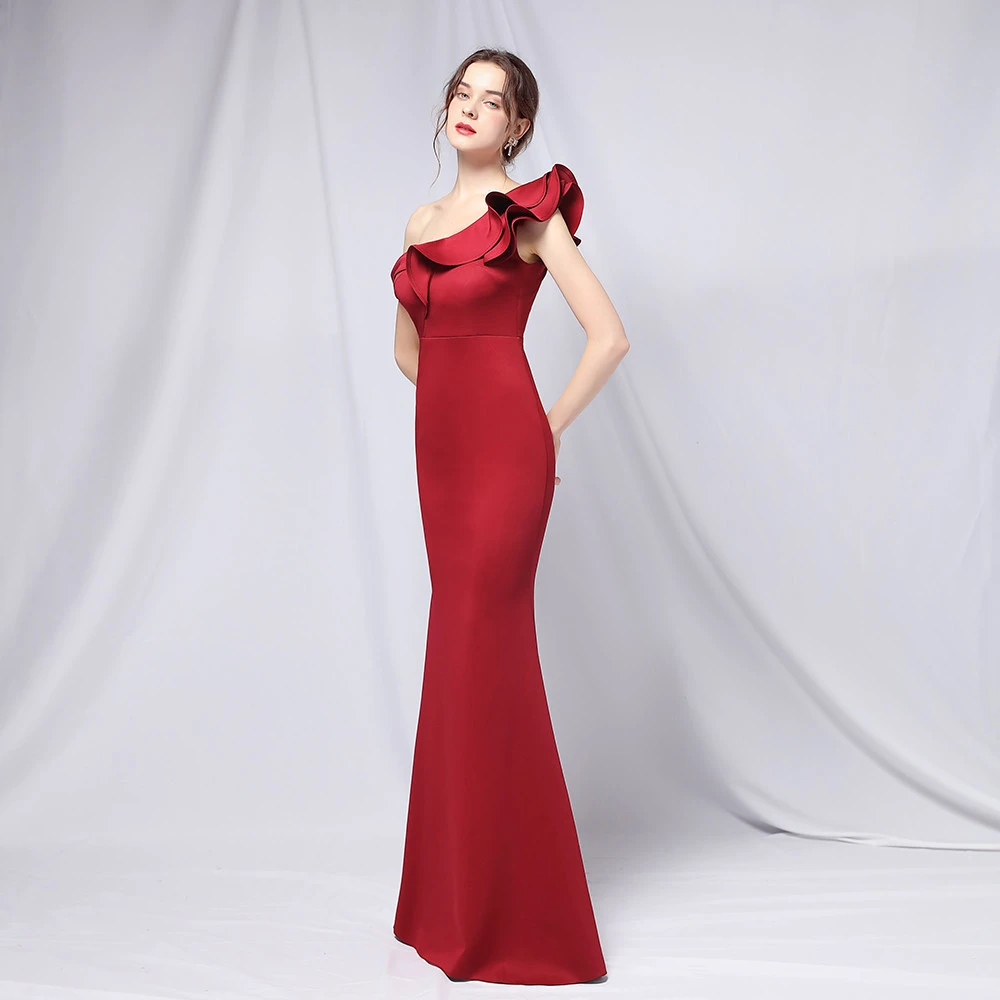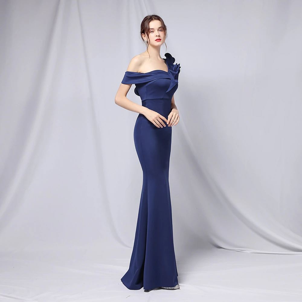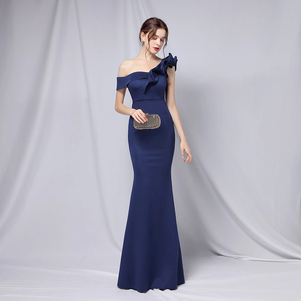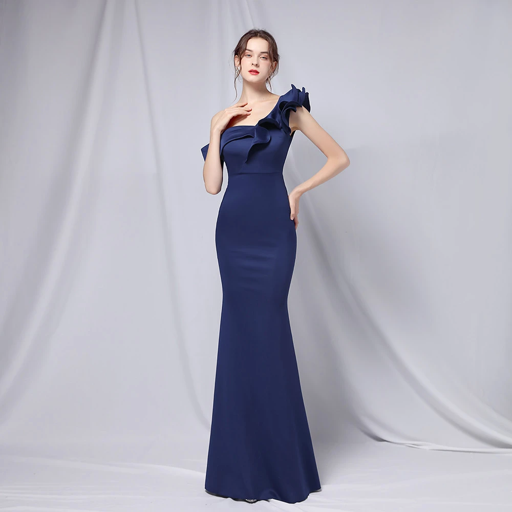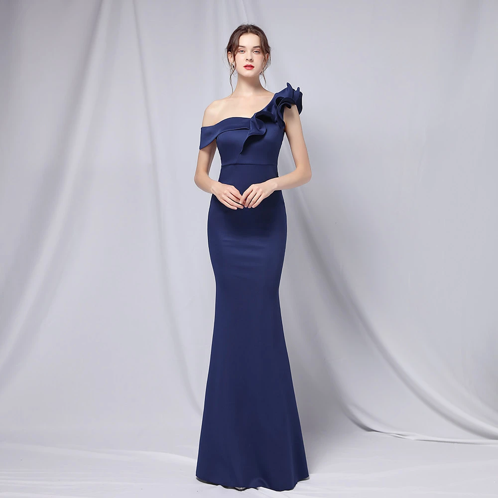 Six-Color One-Shoulder Banquet Evening Dress Fashion Party Long Elegant Slim Sexy Fishtail Dress