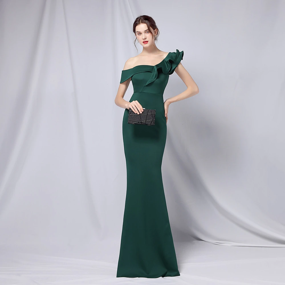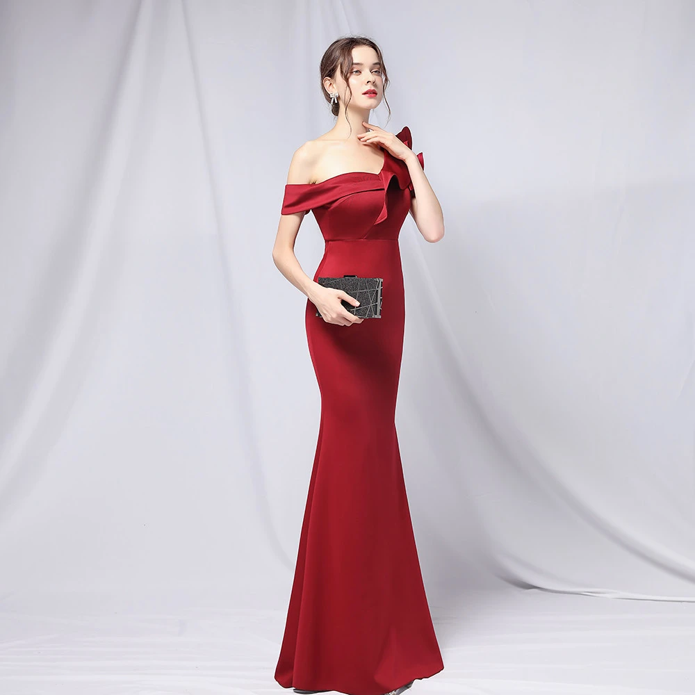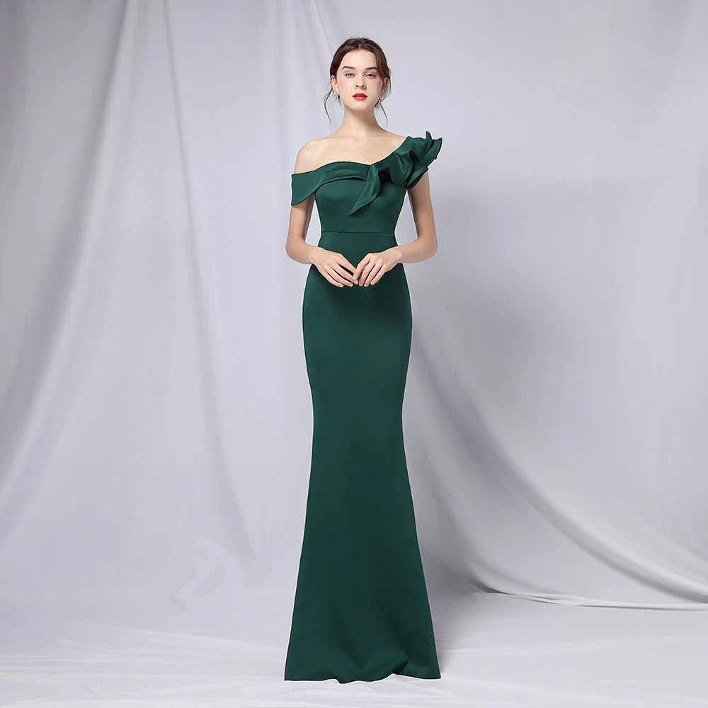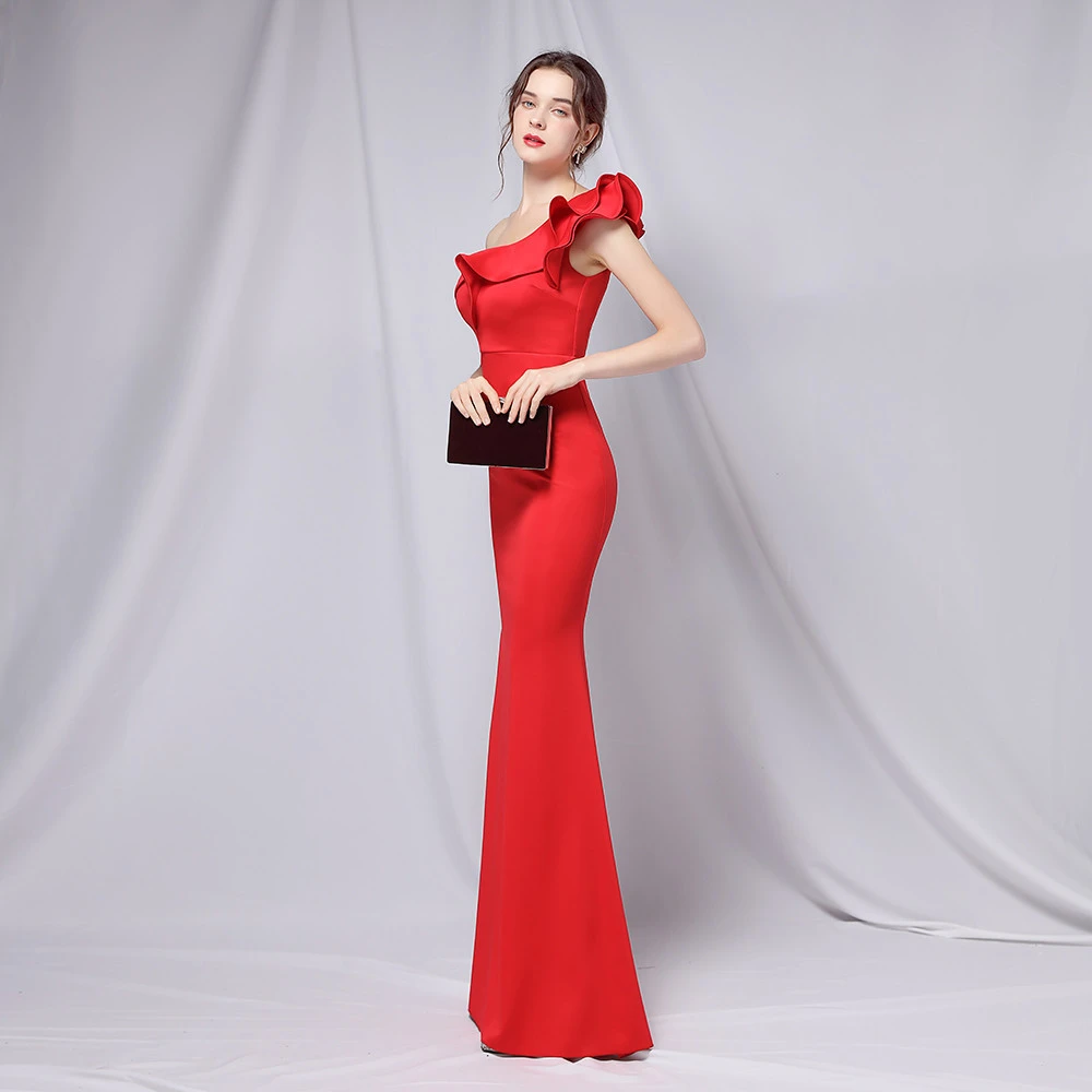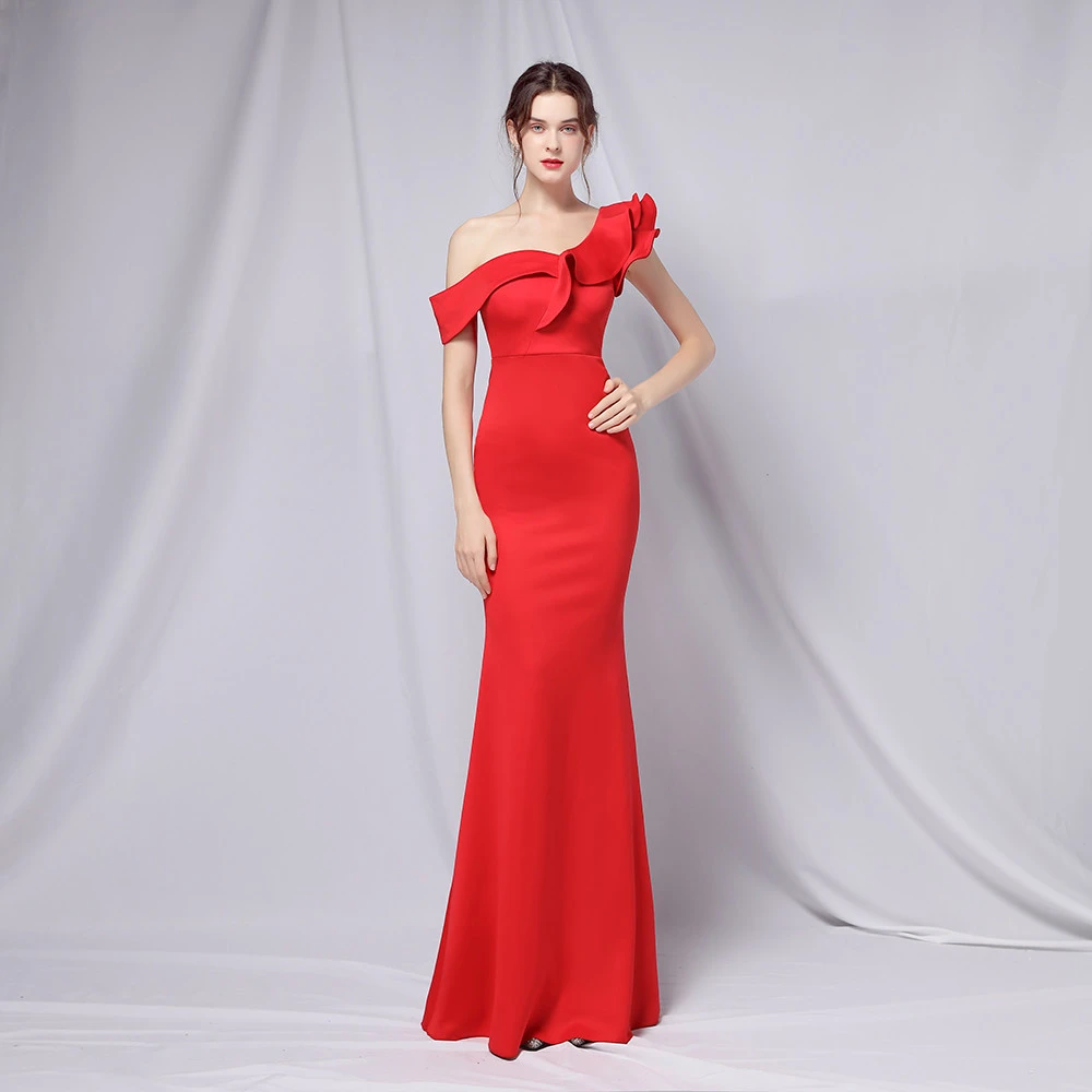 Six-Color One-Shoulder Banquet Evening Dress Fashion Party Long Elegant Slim Sexy Fishtail Dress