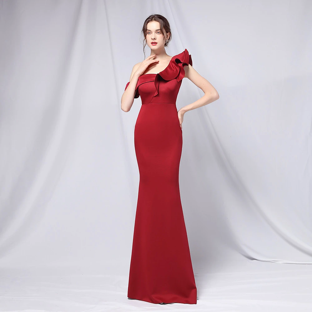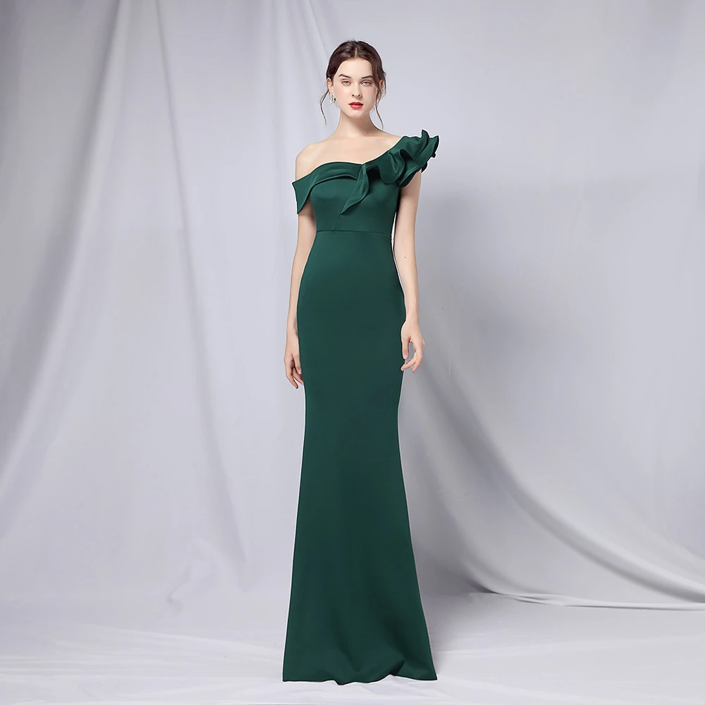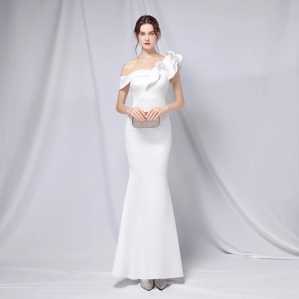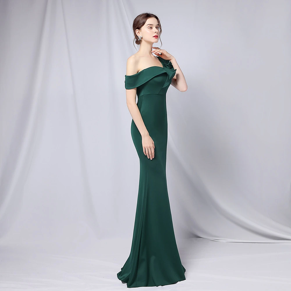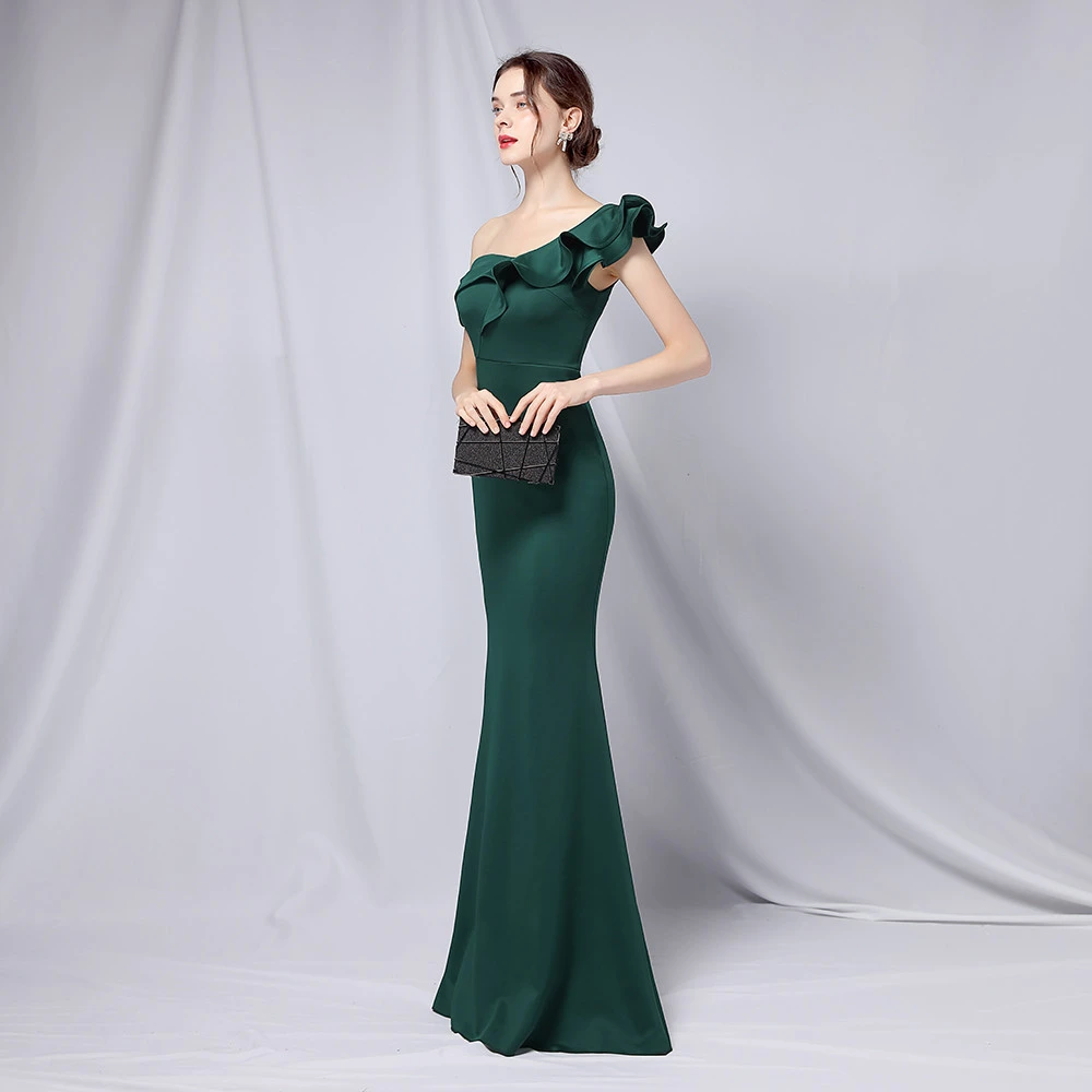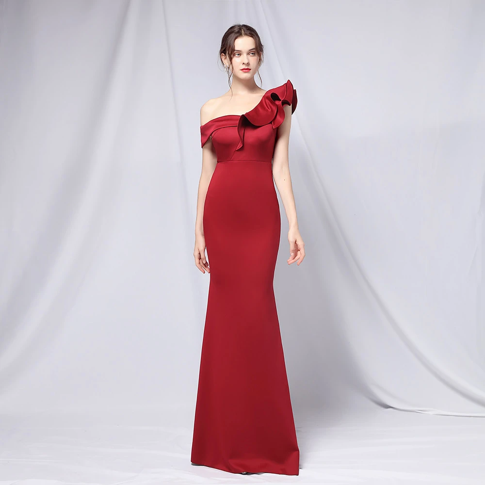 Six-Color One-Shoulder Banquet Evening Dress Fashion Party Long Elegant Slim Sexy Fishtail Dress
