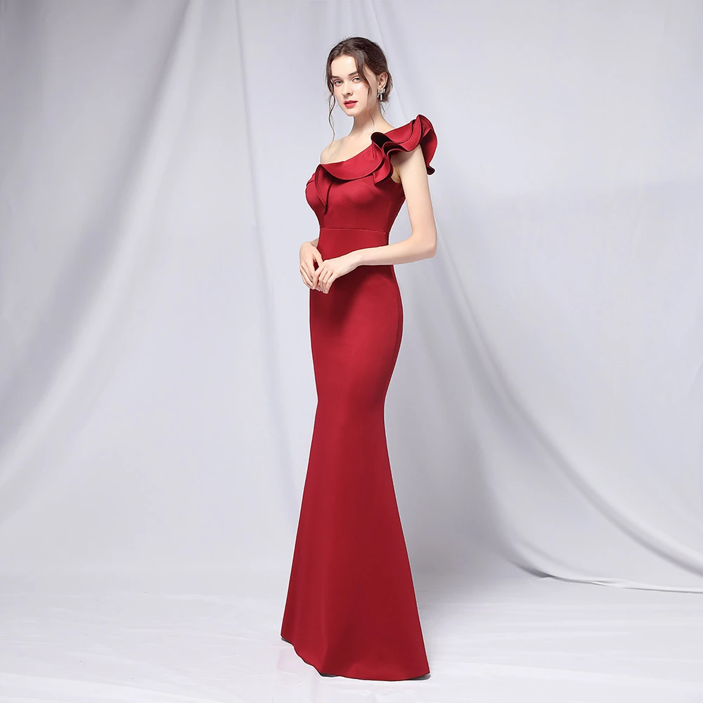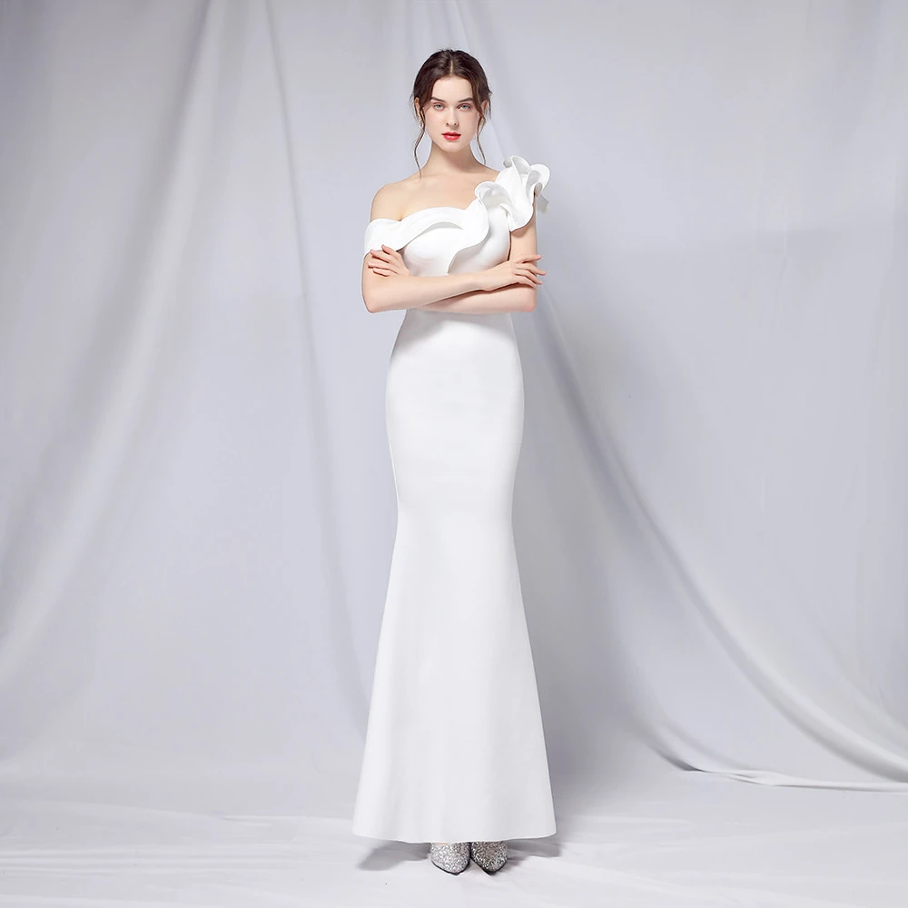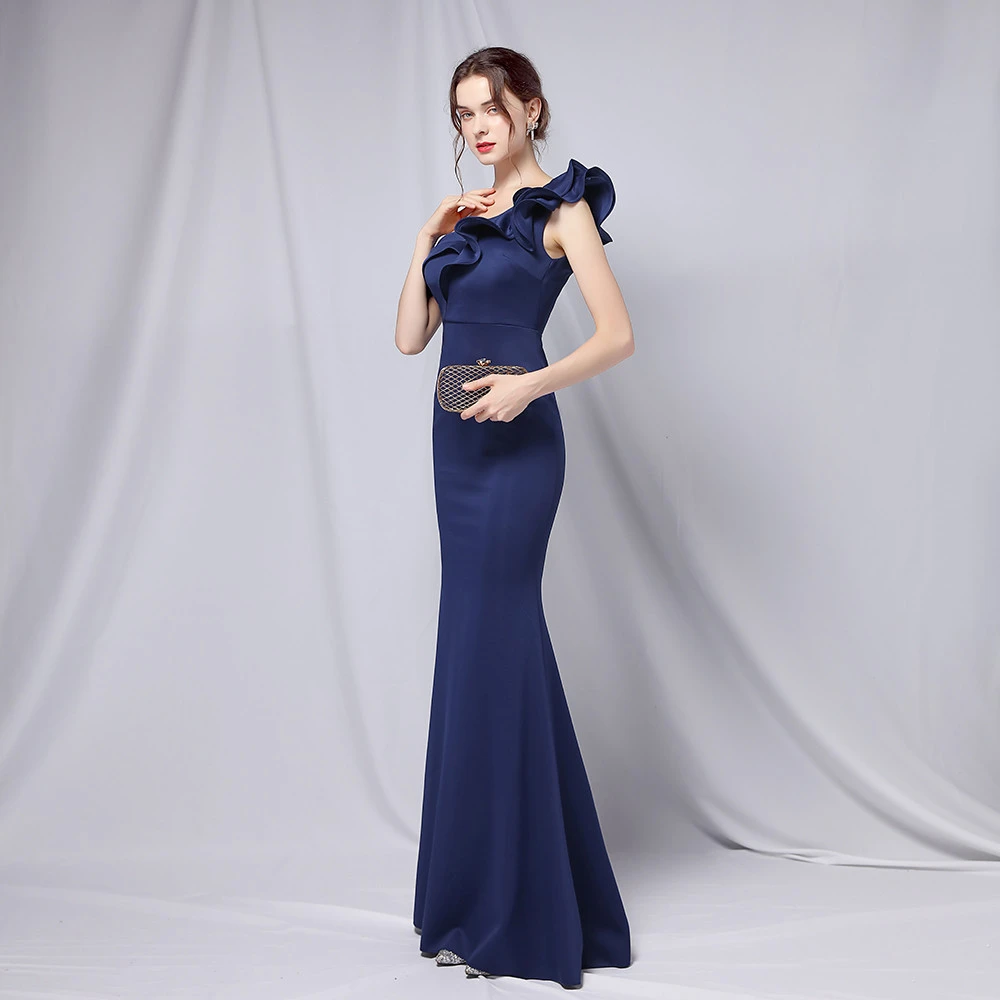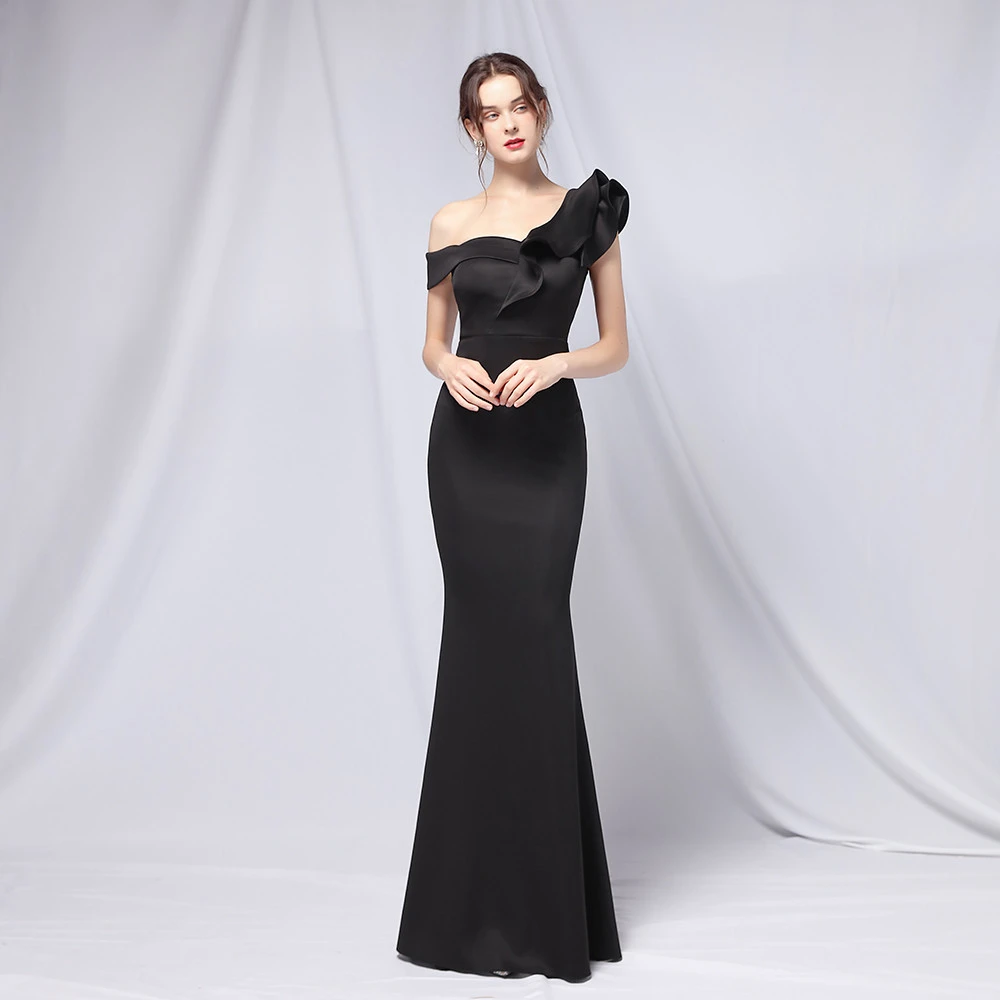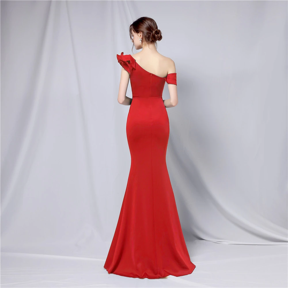 Six-Color One-Shoulder Banquet Evening Dress Fashion Party Long Elegant Slim Sexy Fishtail Dress
