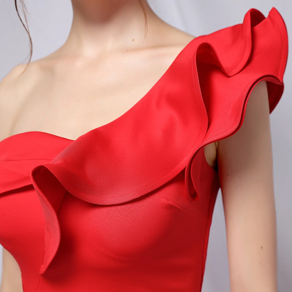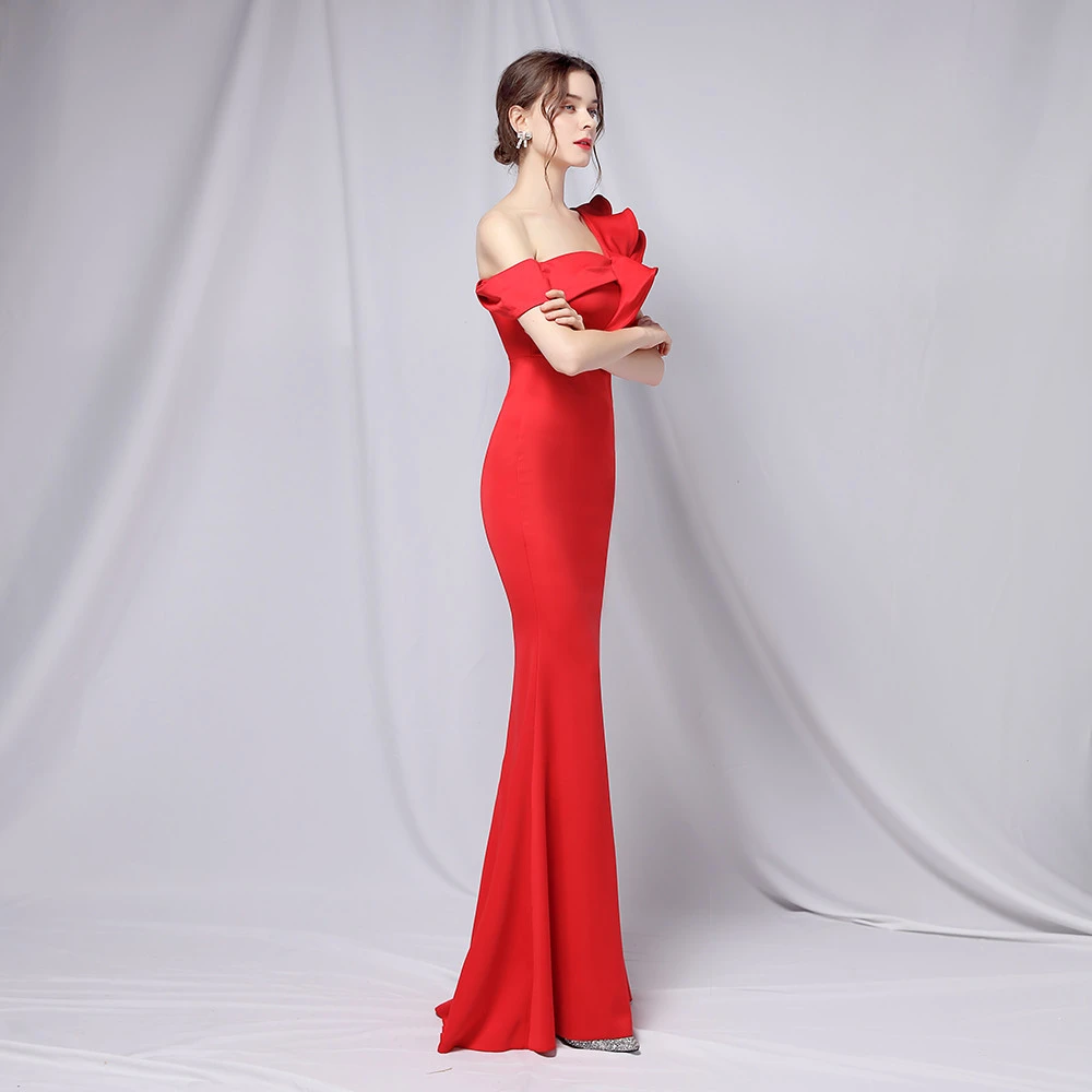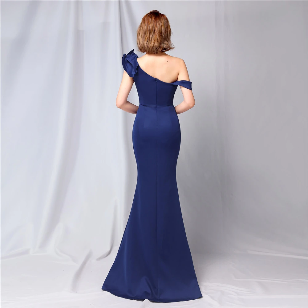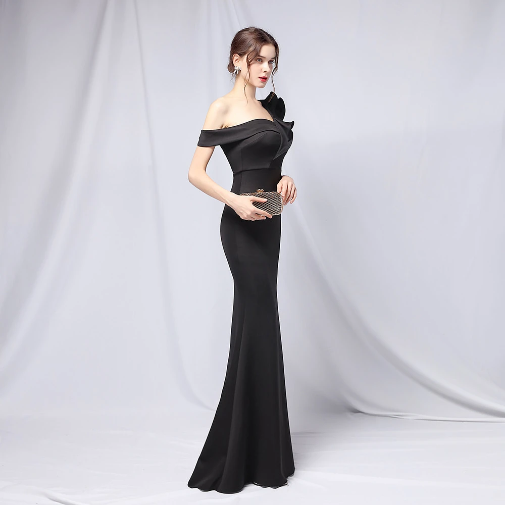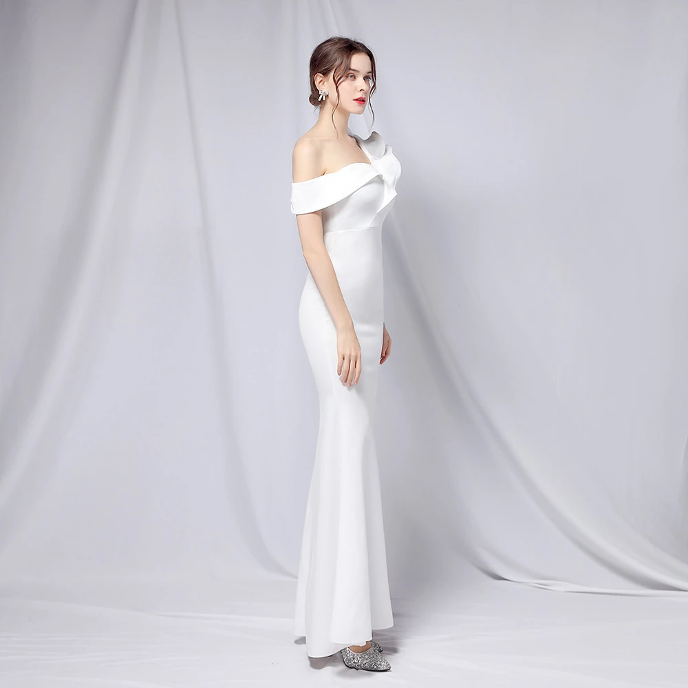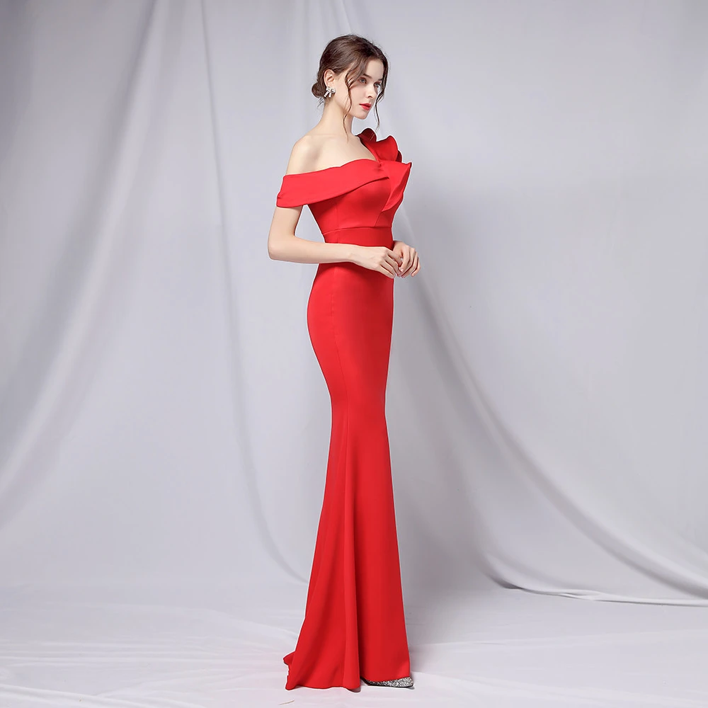 Six-Color One-Shoulder Banquet Evening Dress Fashion Party Long Elegant Slim Sexy Fishtail Dress