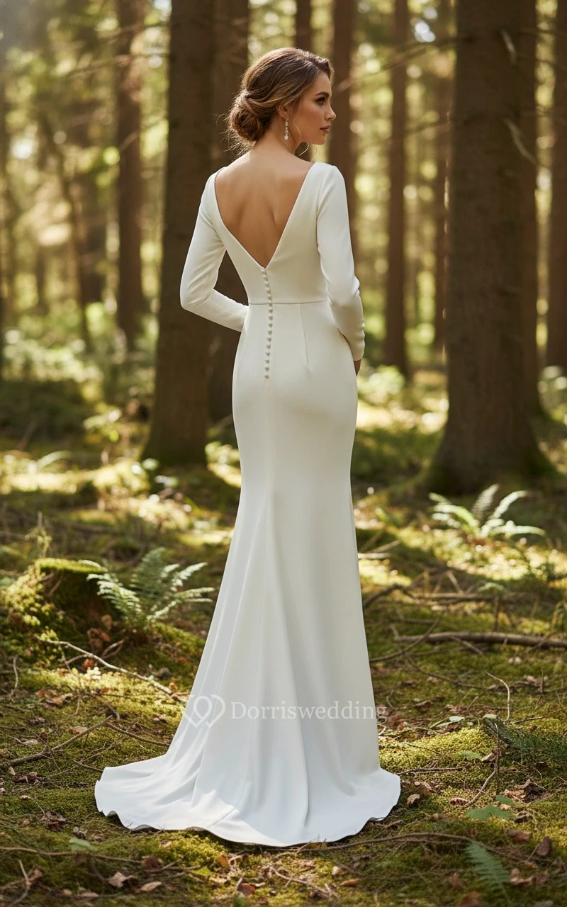 This is the ultimate "cool bride" dress. The long sleeves add a touch of modesty that balances the fitted mermaid cut perfectly. I received so many compliments on how sophisticated I looked. The zipper is sturdy and hidden well, and the neckline is very secure. I couldn't be happier with this choice for my big day.