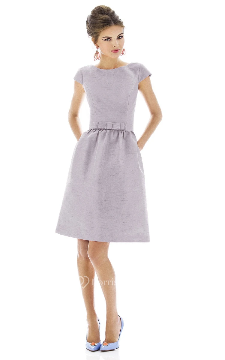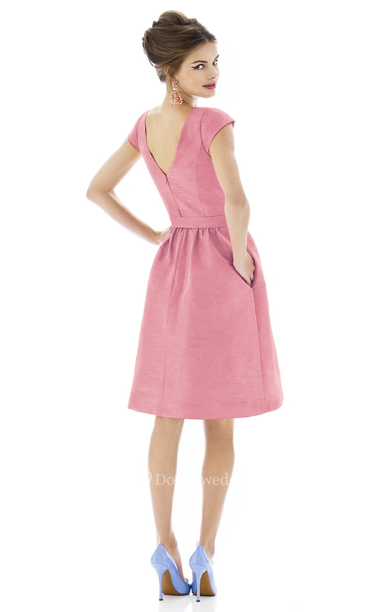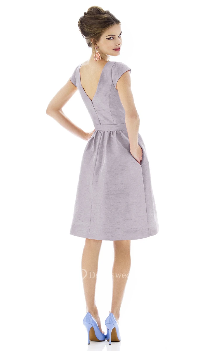 Sleeved-High-Neck A-Line Short Short Dress With Low-V Back