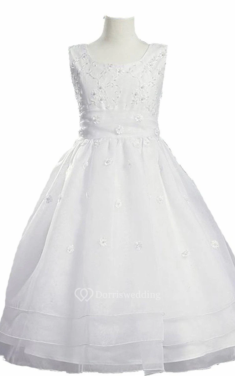 Sleeveless A-line Appliqued Tiered Dress With Pleats