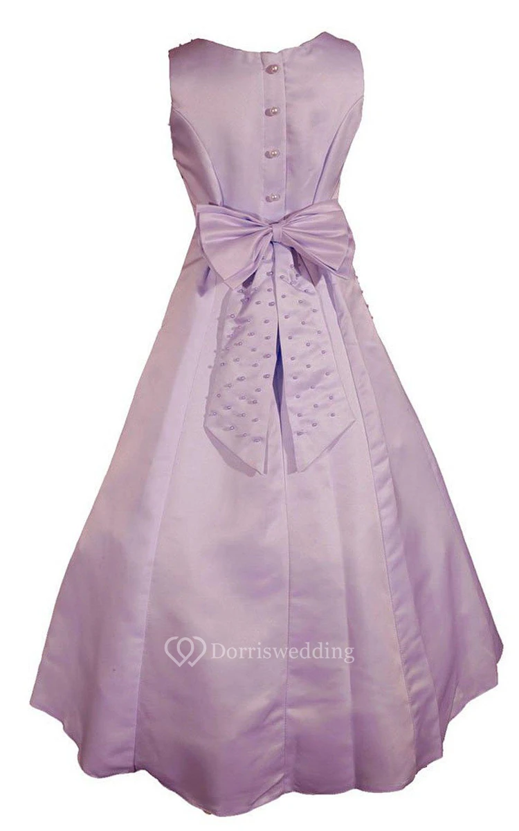 Sleeveless A-line Beaded Dress With Bow and Detachable Jacket
