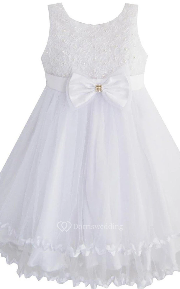 Sleeveless A-line Bowed Dress With Beadings