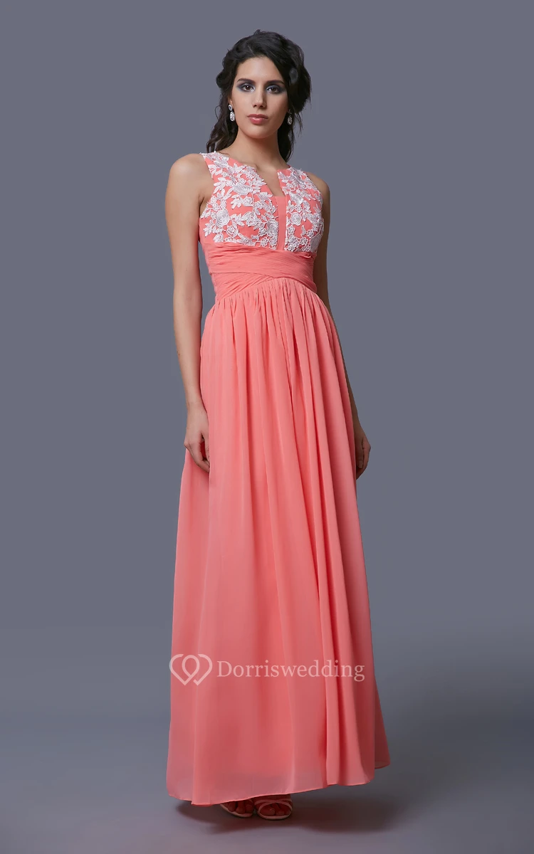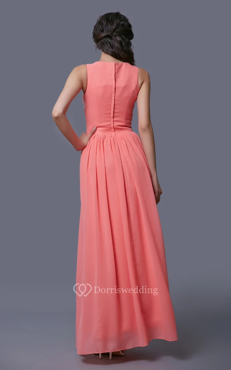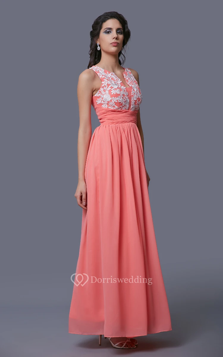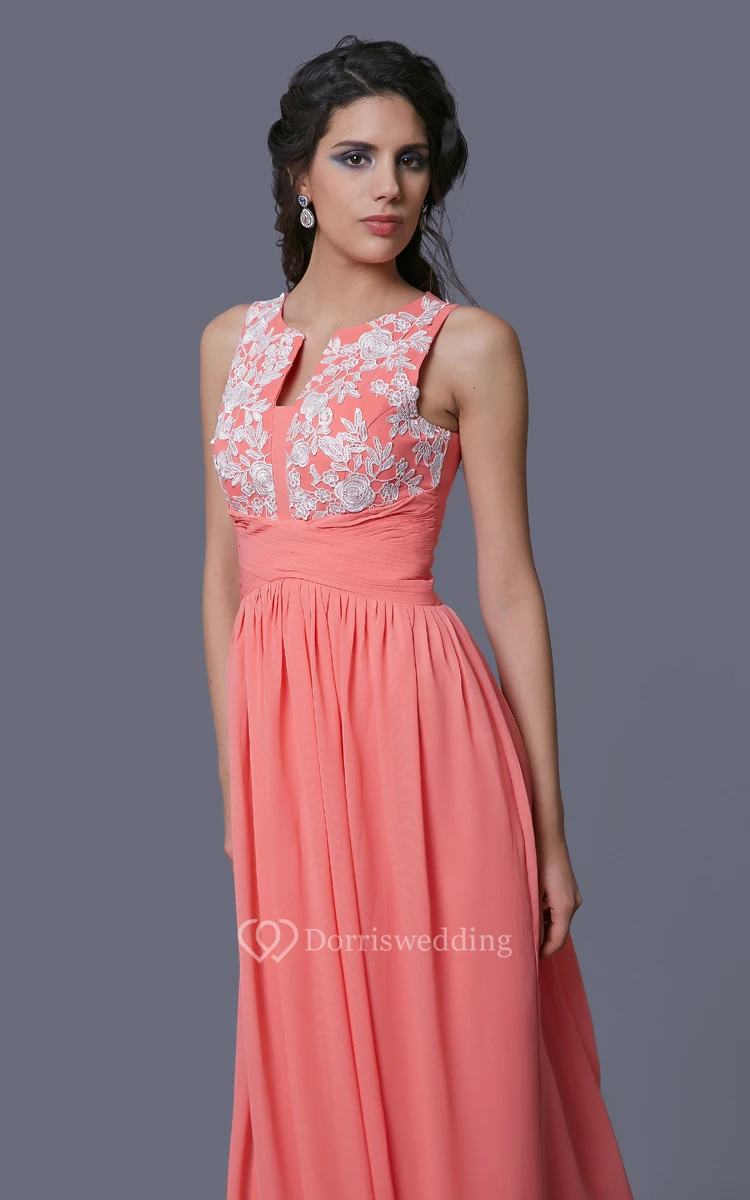 Sleeveless A-Line Chiffon Dress With Lace Appliques and Notched Neck