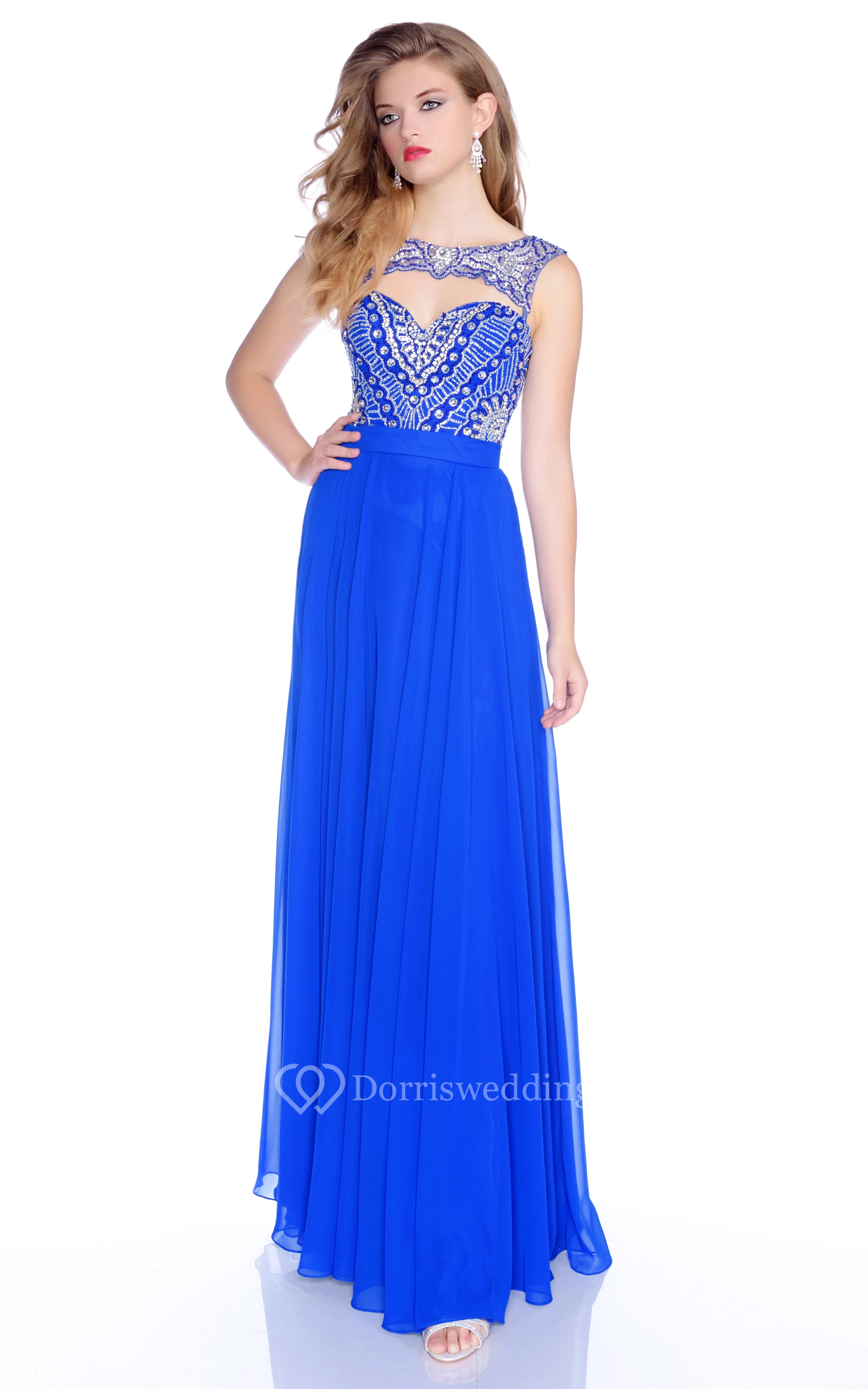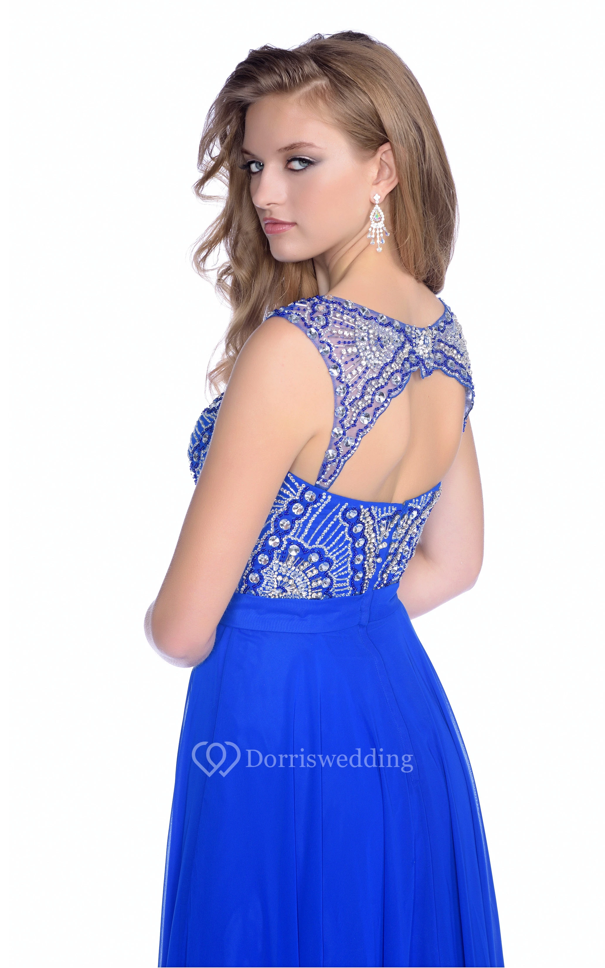 Sleeveless A-Line Chiffon Prom Dress With Keyhole Back And Sequined Bodice