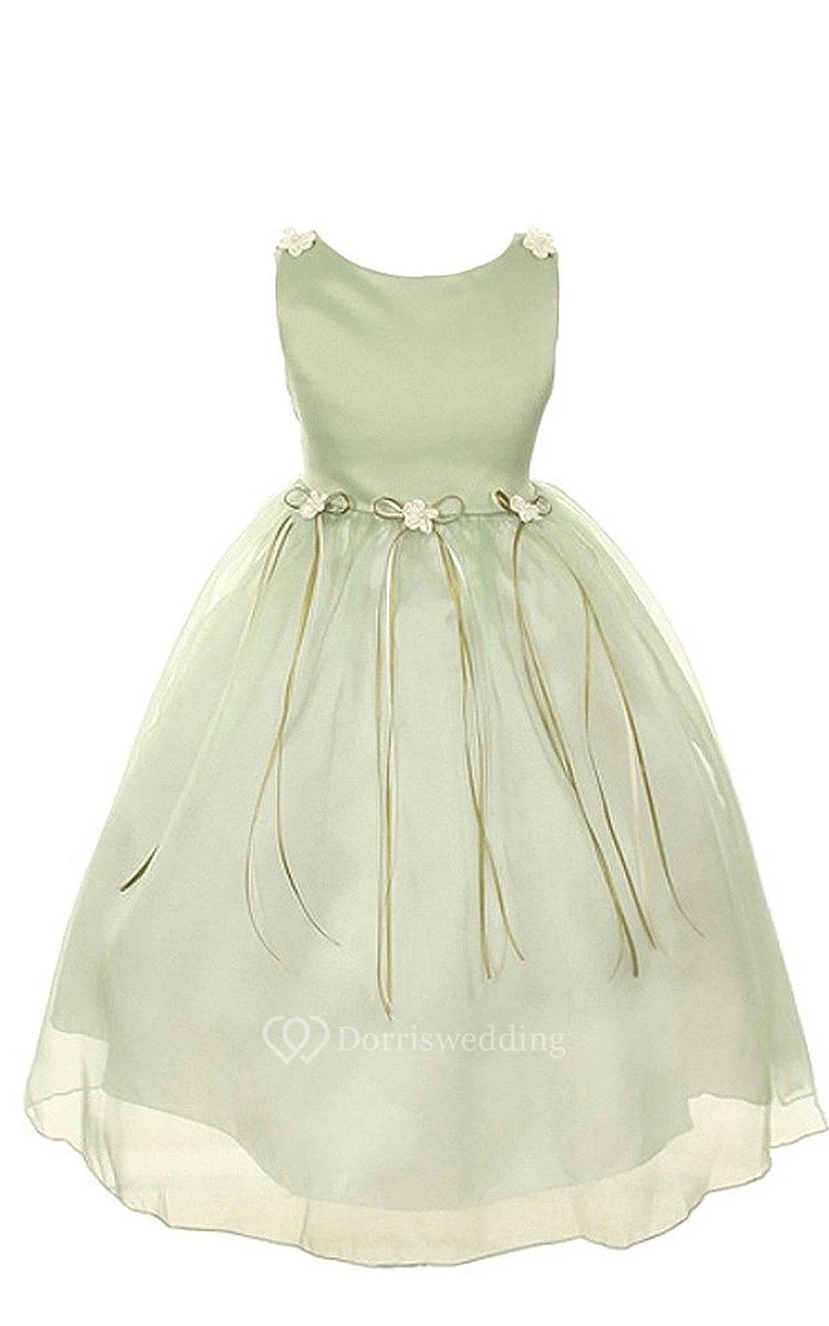 Sleeveless A-line Dress With Bows and Flowers