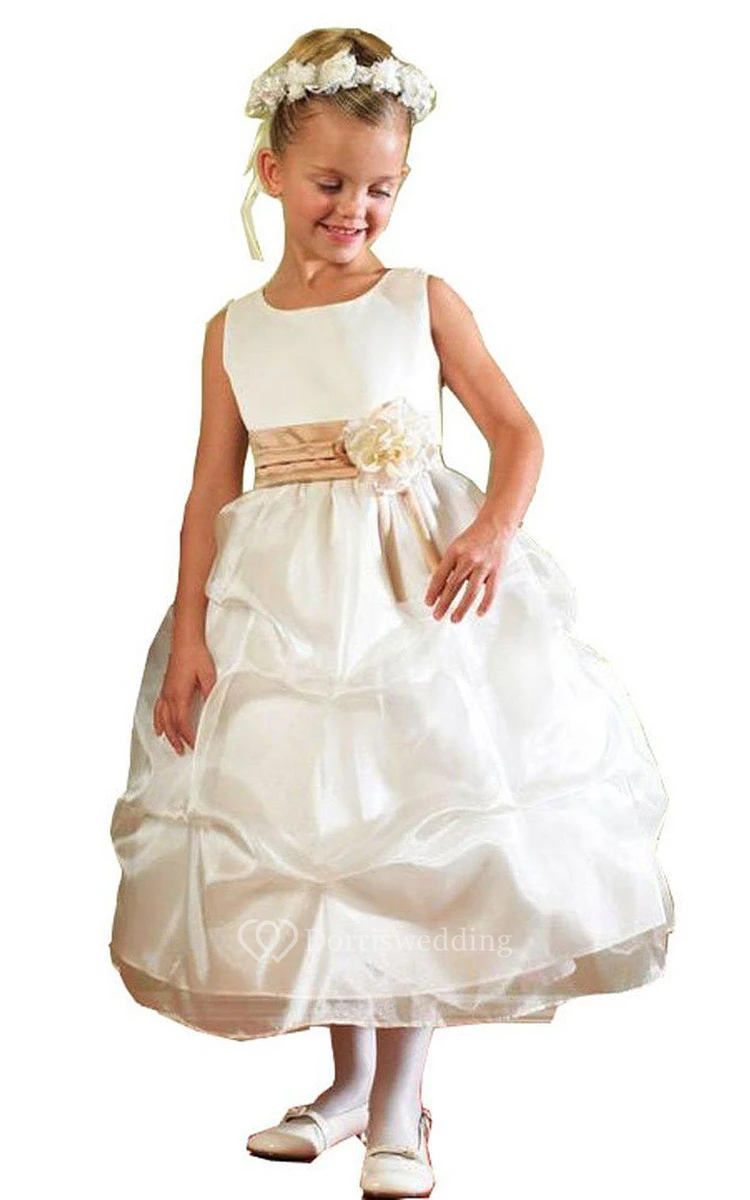 Sleeveless A-line Dress With Flower and Ruffles