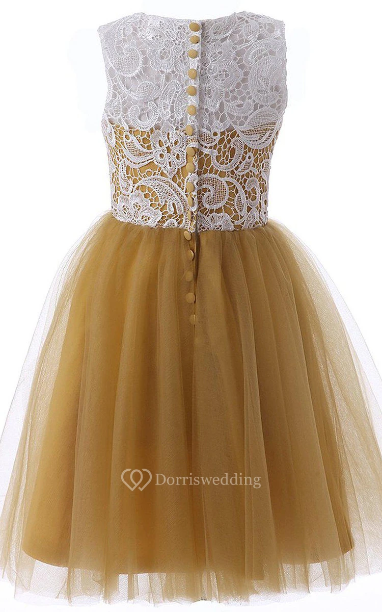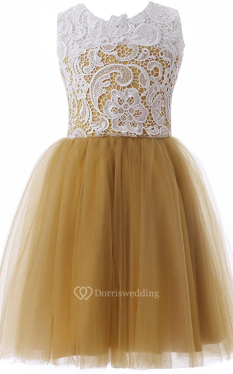 Sleeveless A-line Dress With Tulle and Lace Bodice