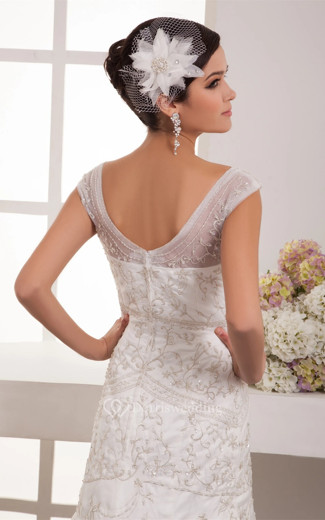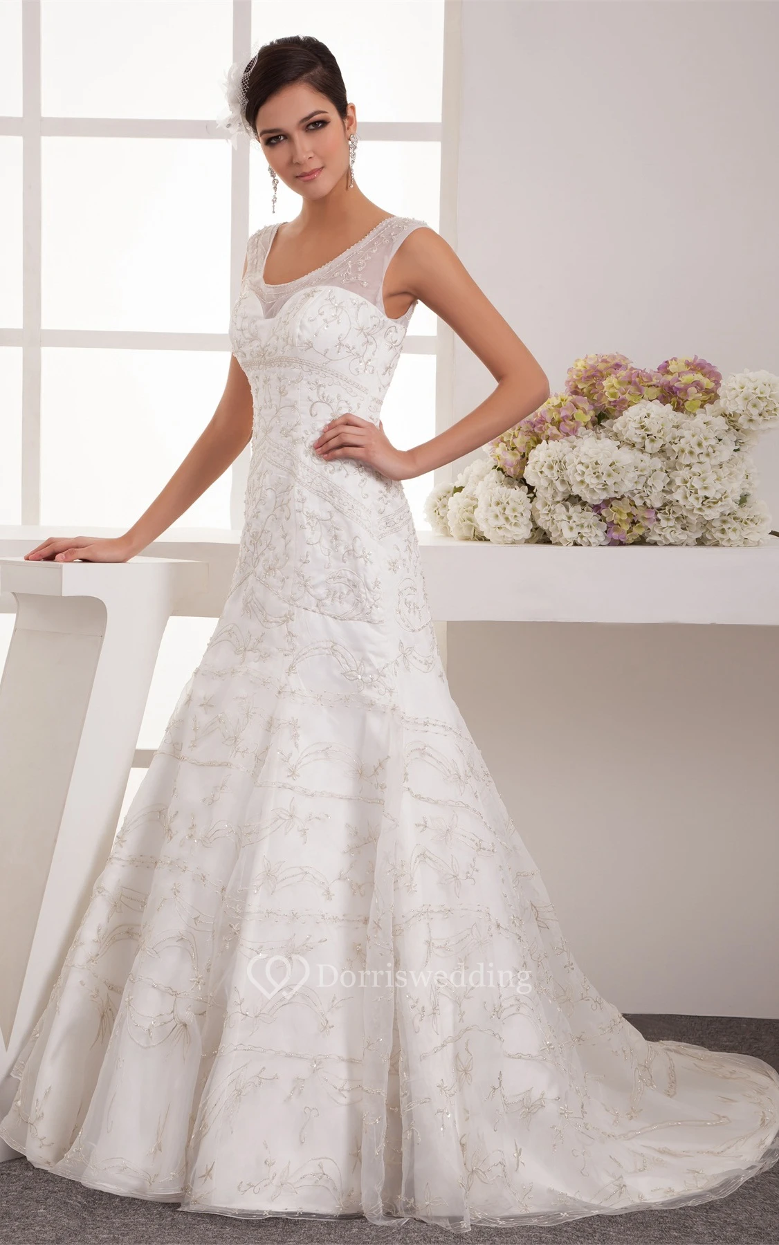 Sleeveless A-Line Embroidered Trumpet Silhouette and Dress With Beading