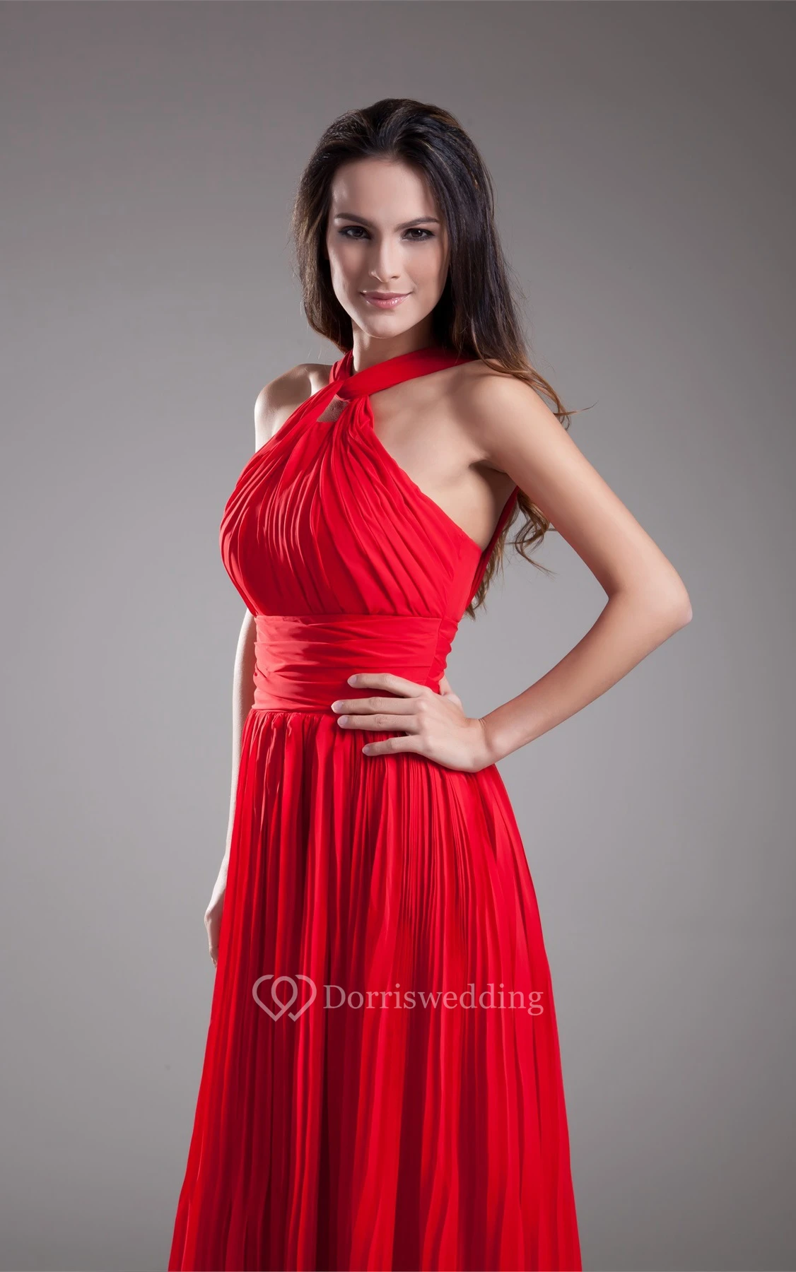 Sleeveless A-Line Floor-Length Ruched Zipper Back and Dress With Pleats