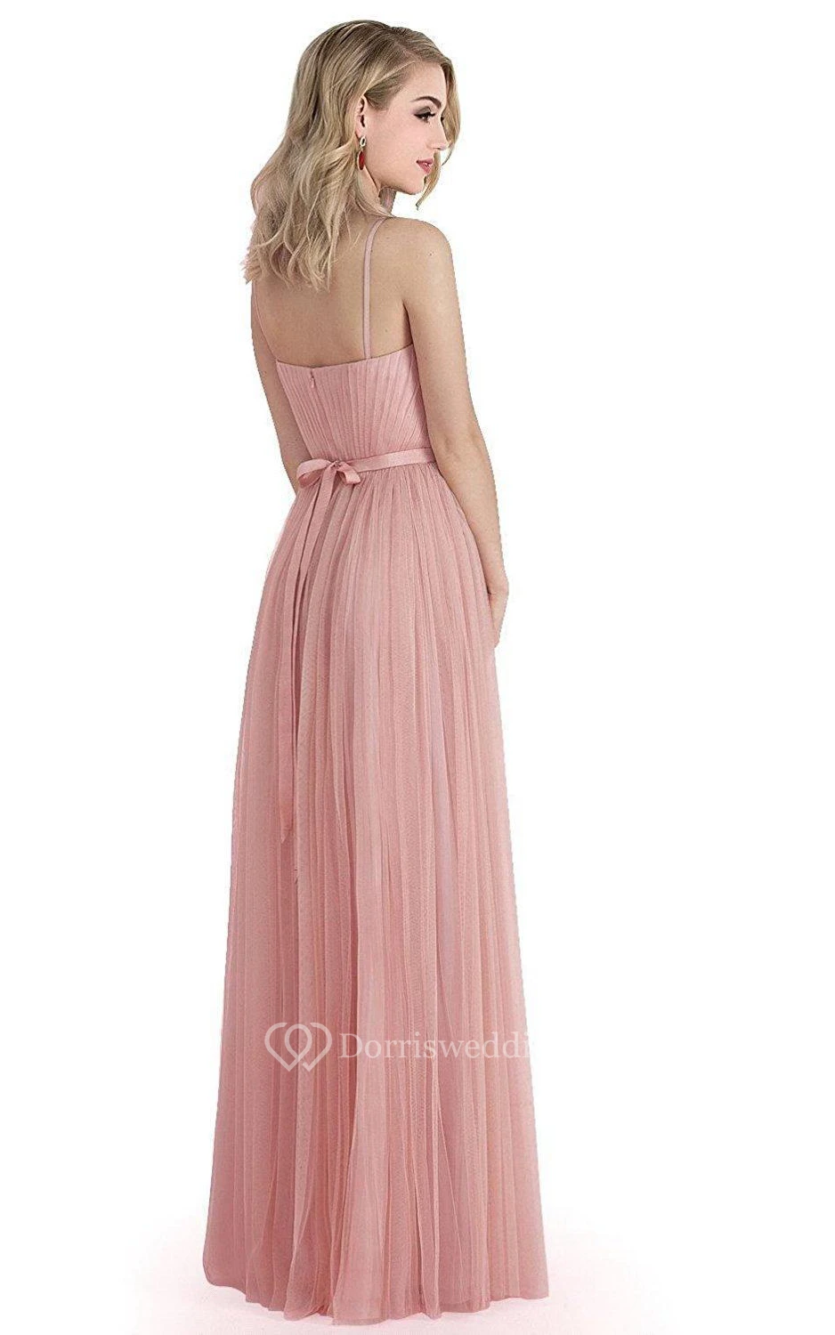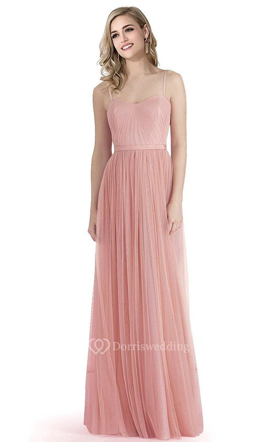 Sleeveless A-line Floor-length Tulle Dress with Spaghetti Straps