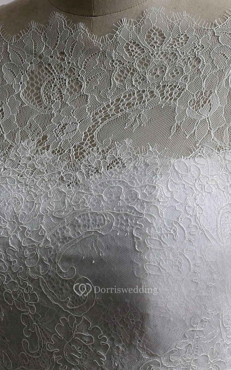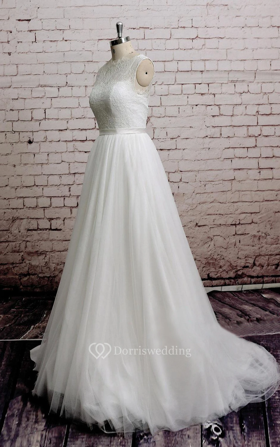 Sleeveless A-Line High Neck Tulle Dress With Lace Bodice and Illusion Back
