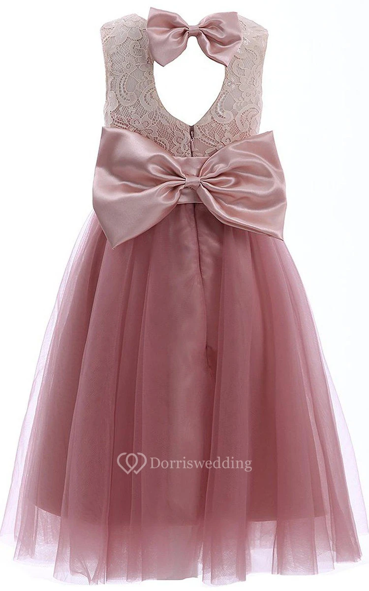 Sleeveless A-line Lace Dress With Bows and Key-hole Back