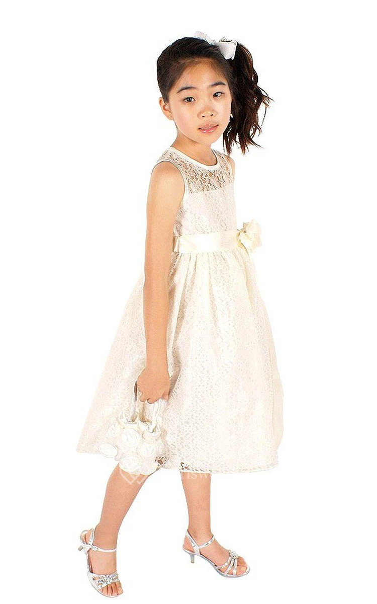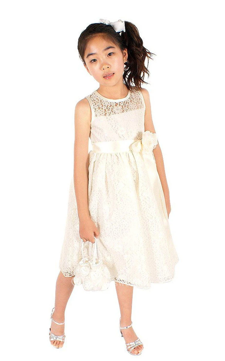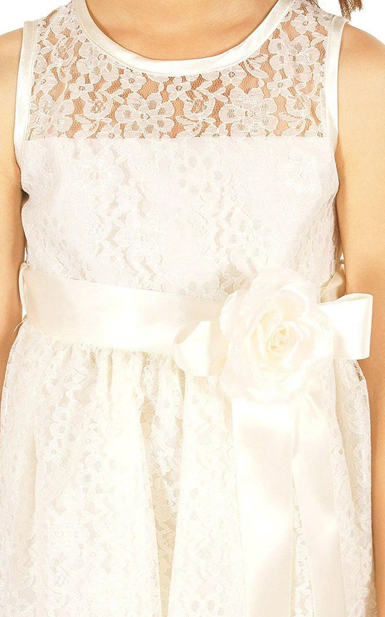 Sleeveless A-line Lace Dress With Flower and Illusion Neck