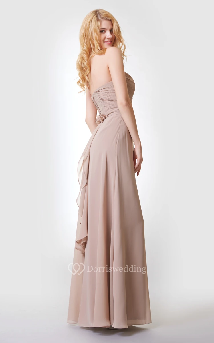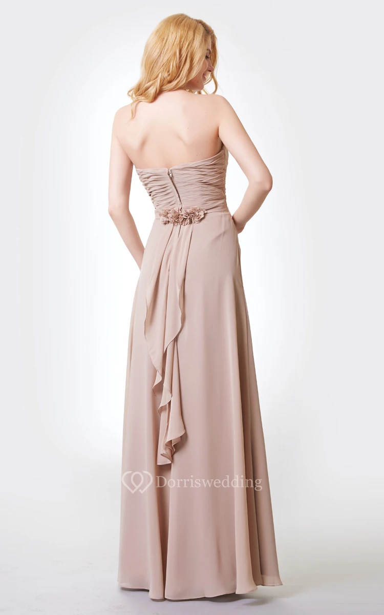 Sleeveless A-line Long Chiffon Dress With Bandage and Draping