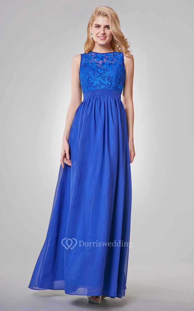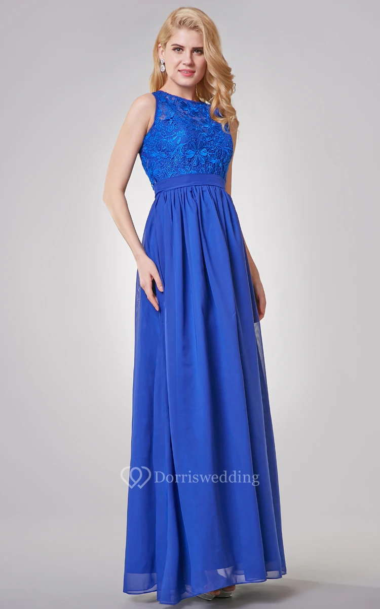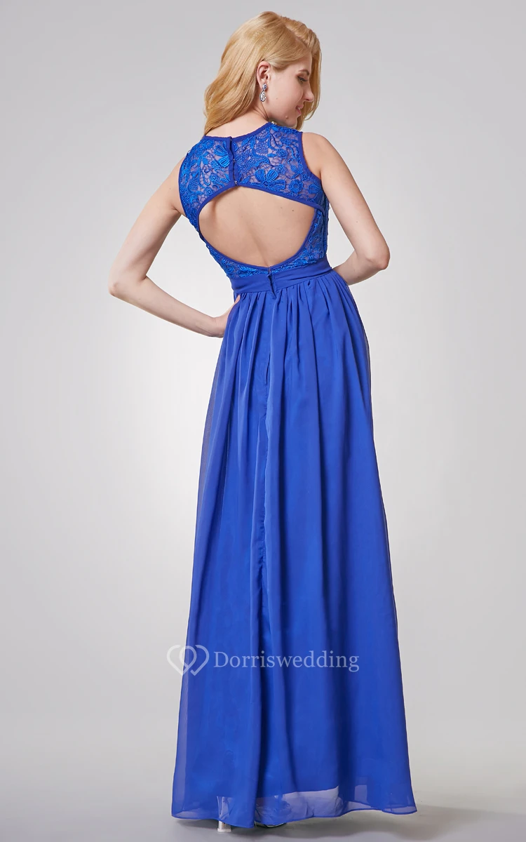 Sleeveless A-line Long Chiffon Dress With Illusion Back