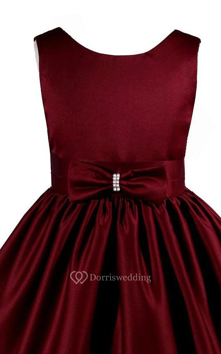 Sleeveless A-line Pleated Dress With Bow