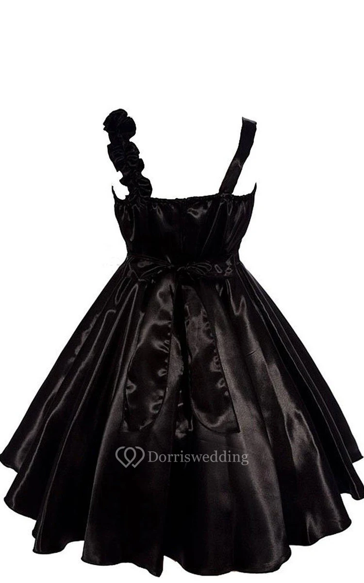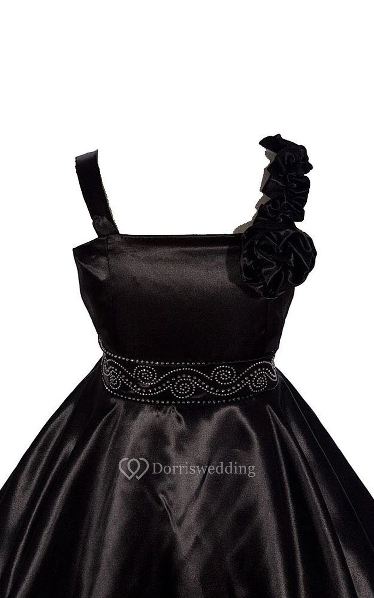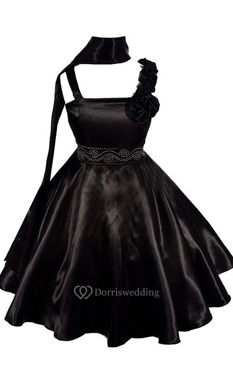 Sleeveless A-line Pleated Dress With Floral Shoulder