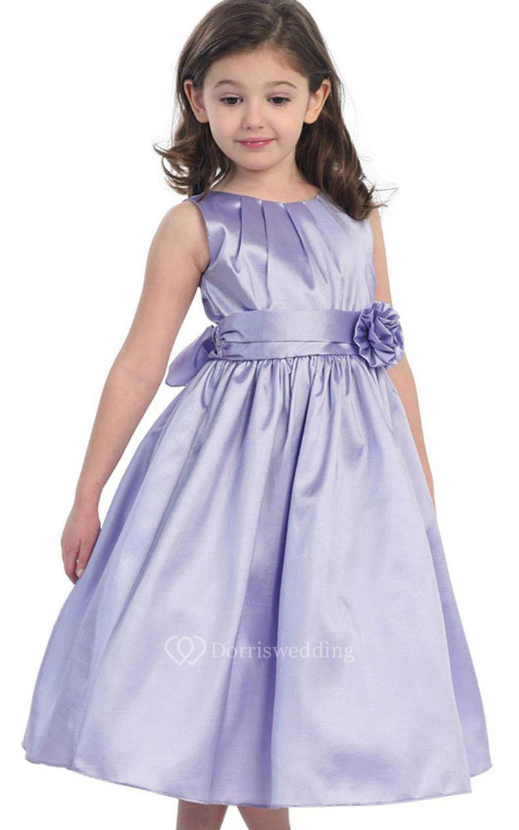 Sleeveless A-line Pleated Dress With Flower and Bow