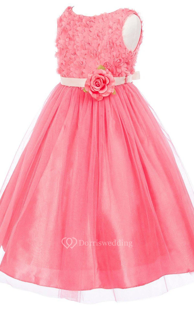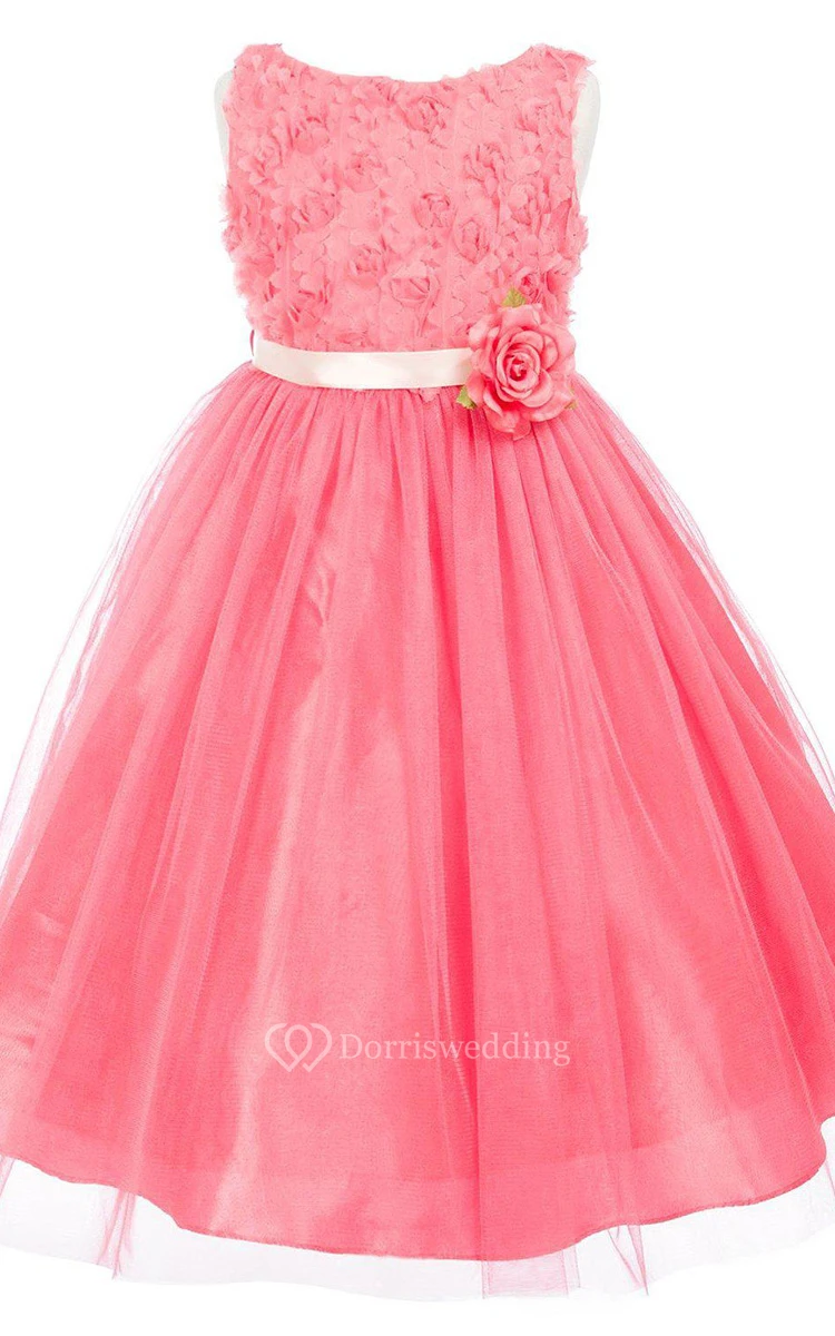 Sleeveless A-line Ruched Dress With Flowers