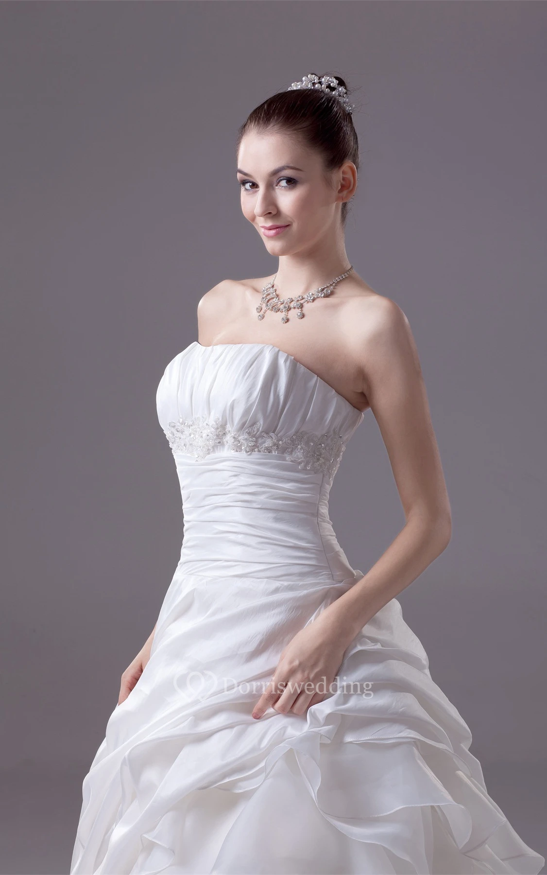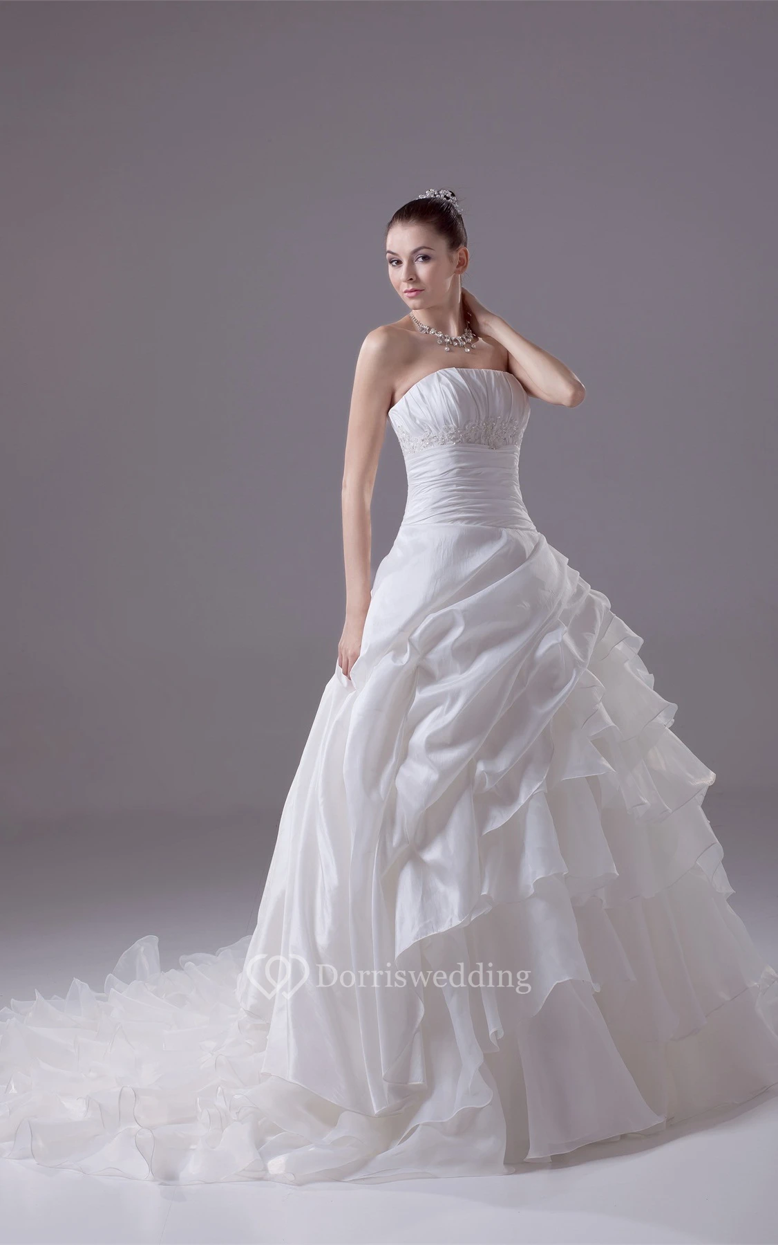 Sleeveless A-Line Ruched Gown With Cascading Ruffles and Cinched Waistband