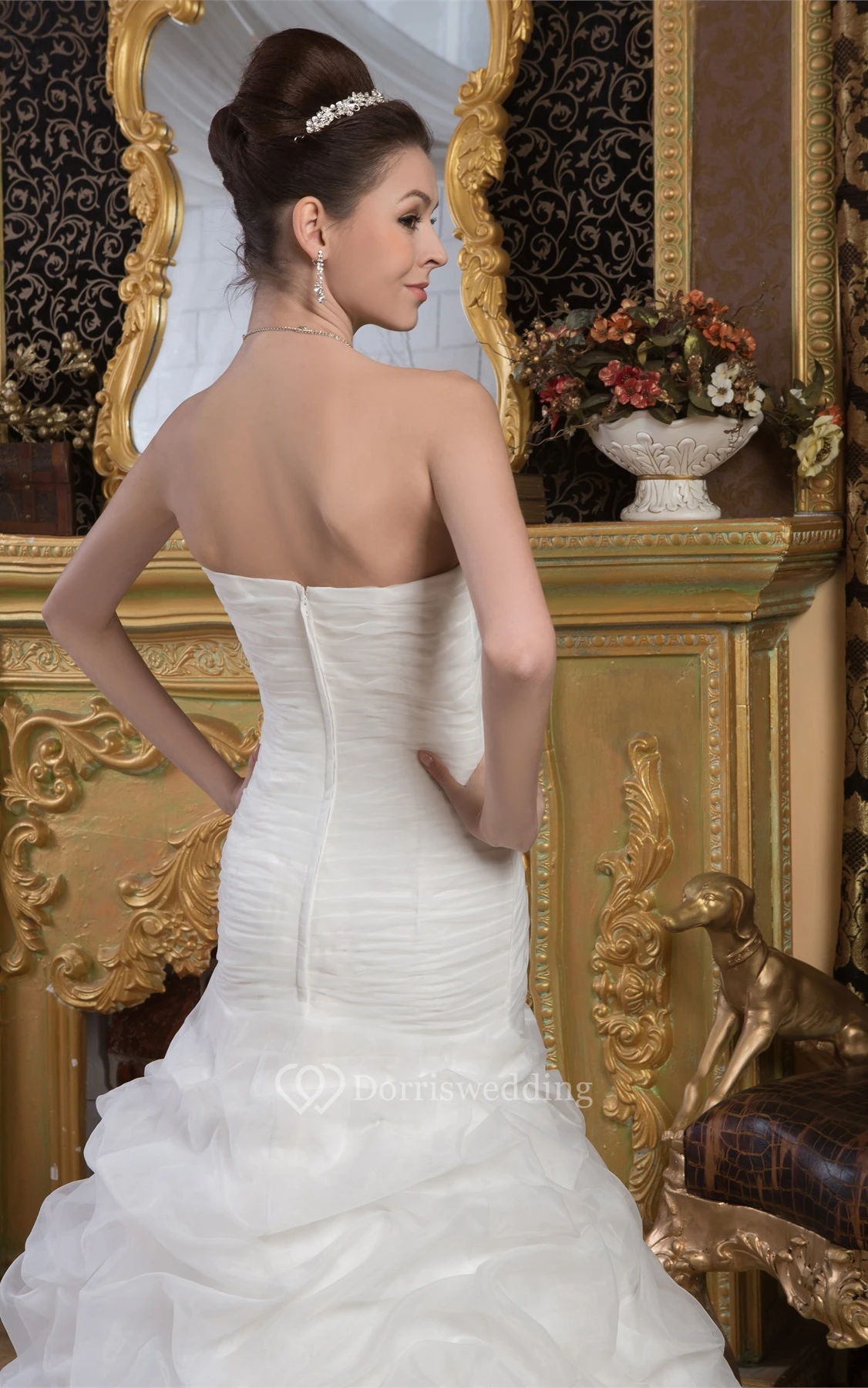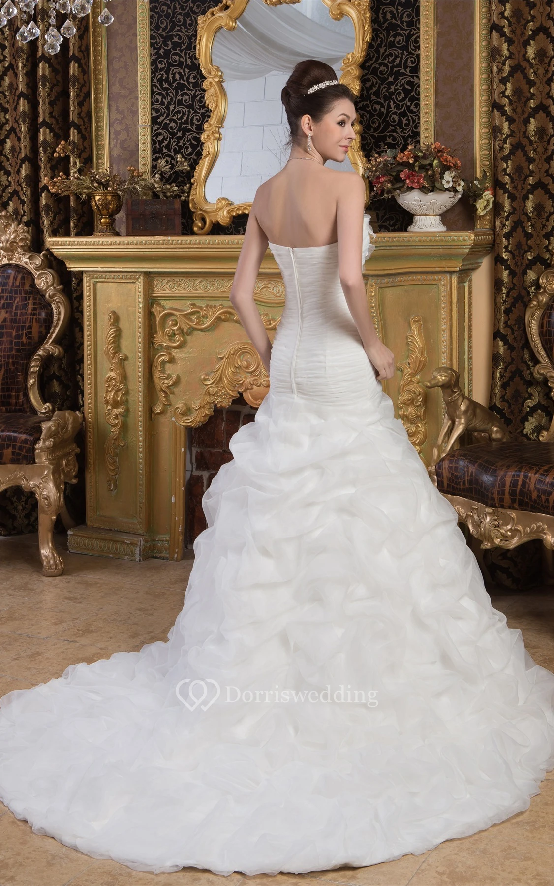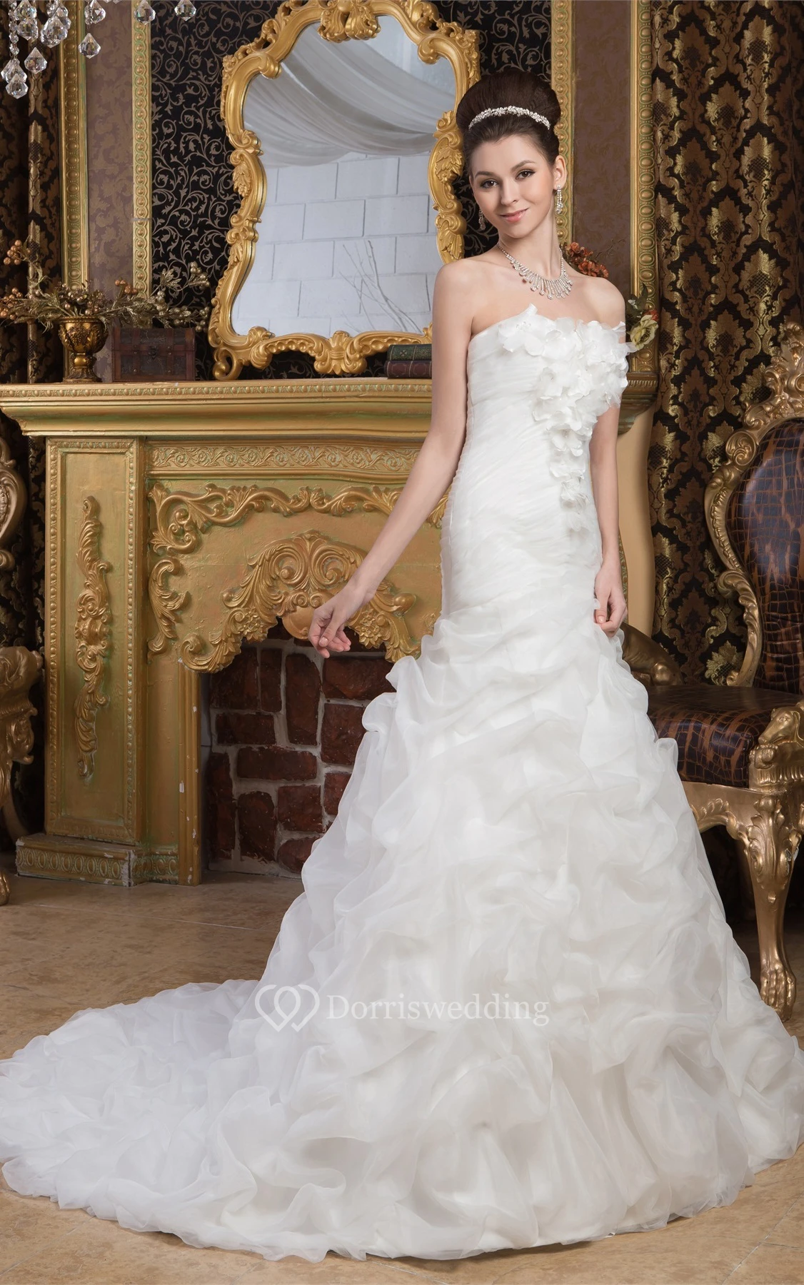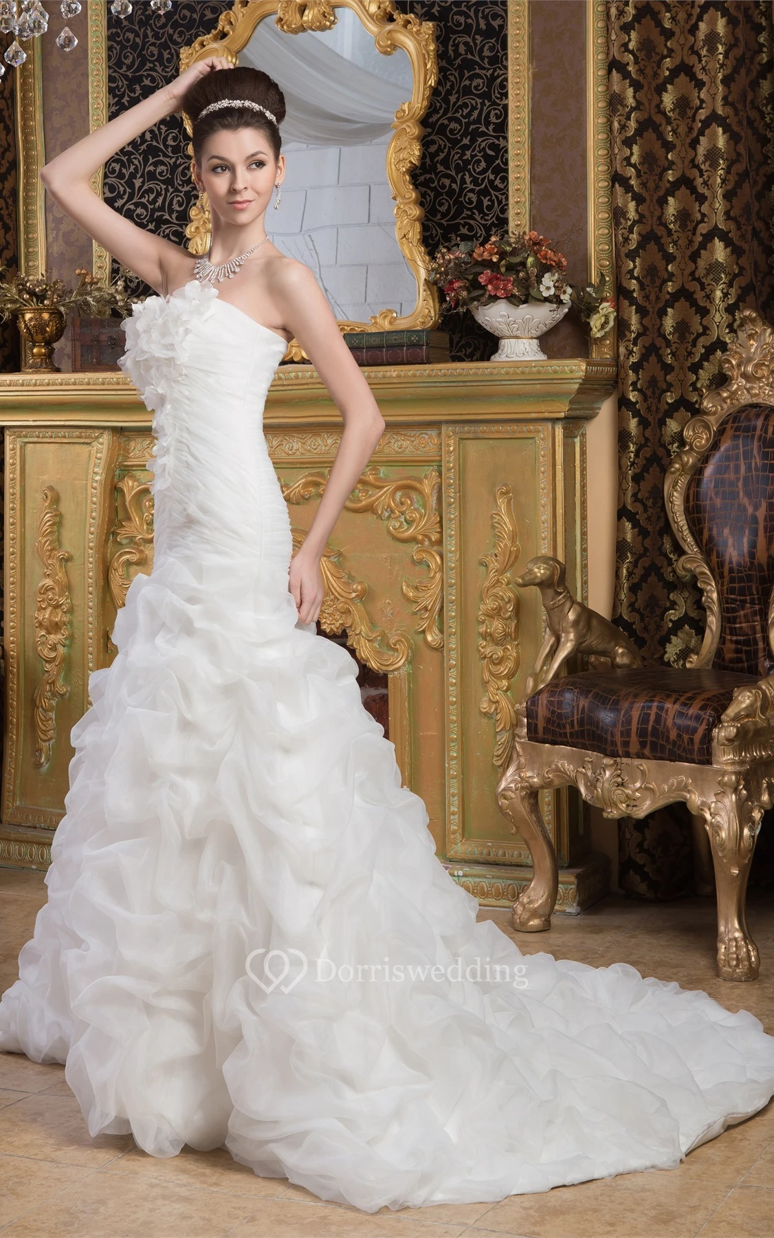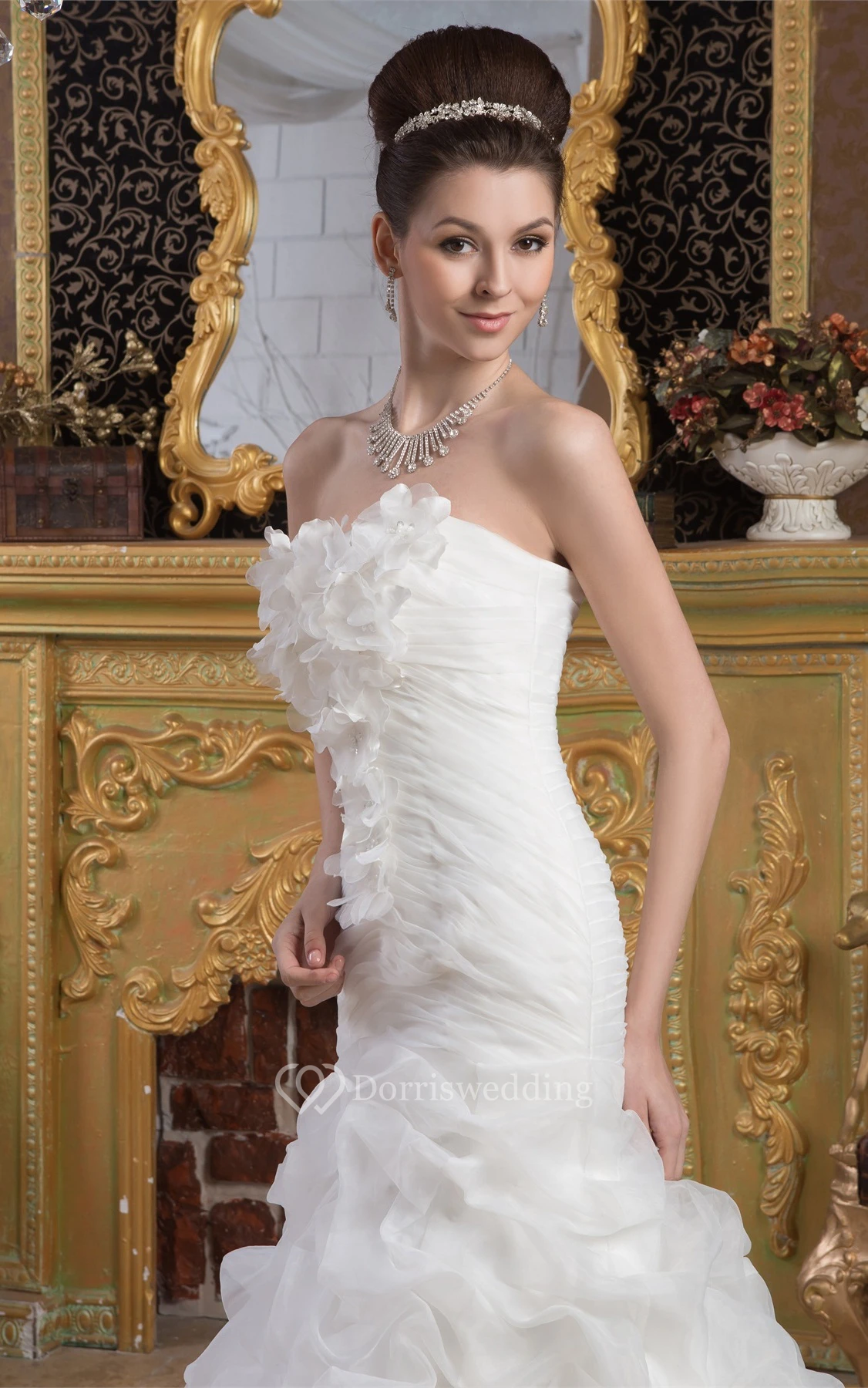 Sleeveless A-Line Ruched Trumpet Silhouette and Gown With Flower