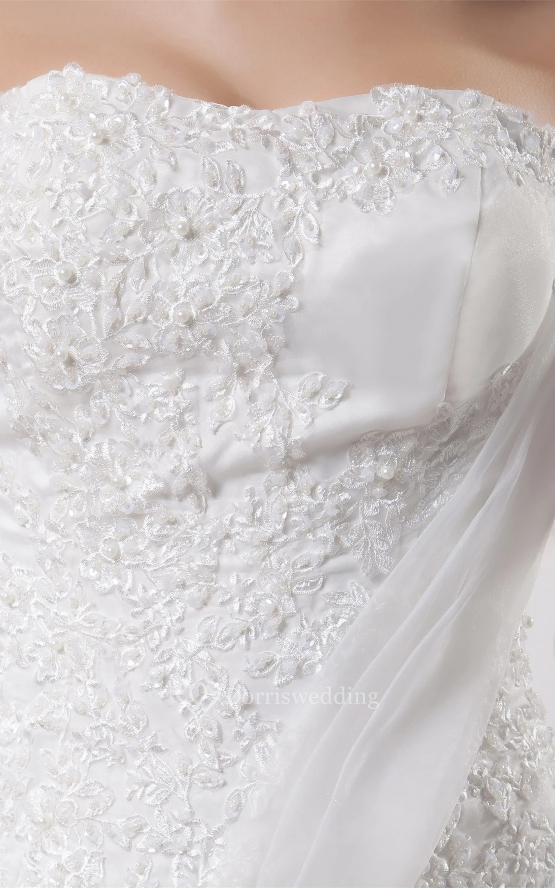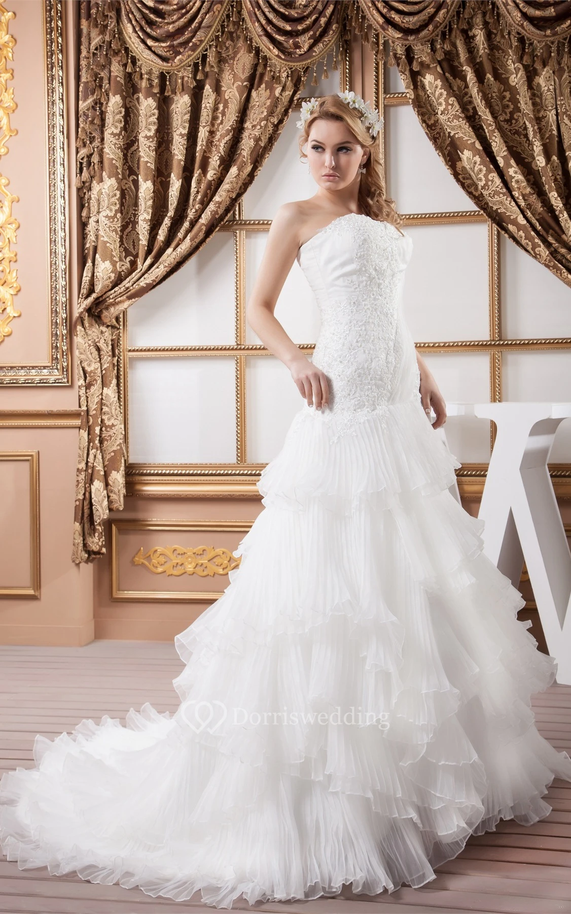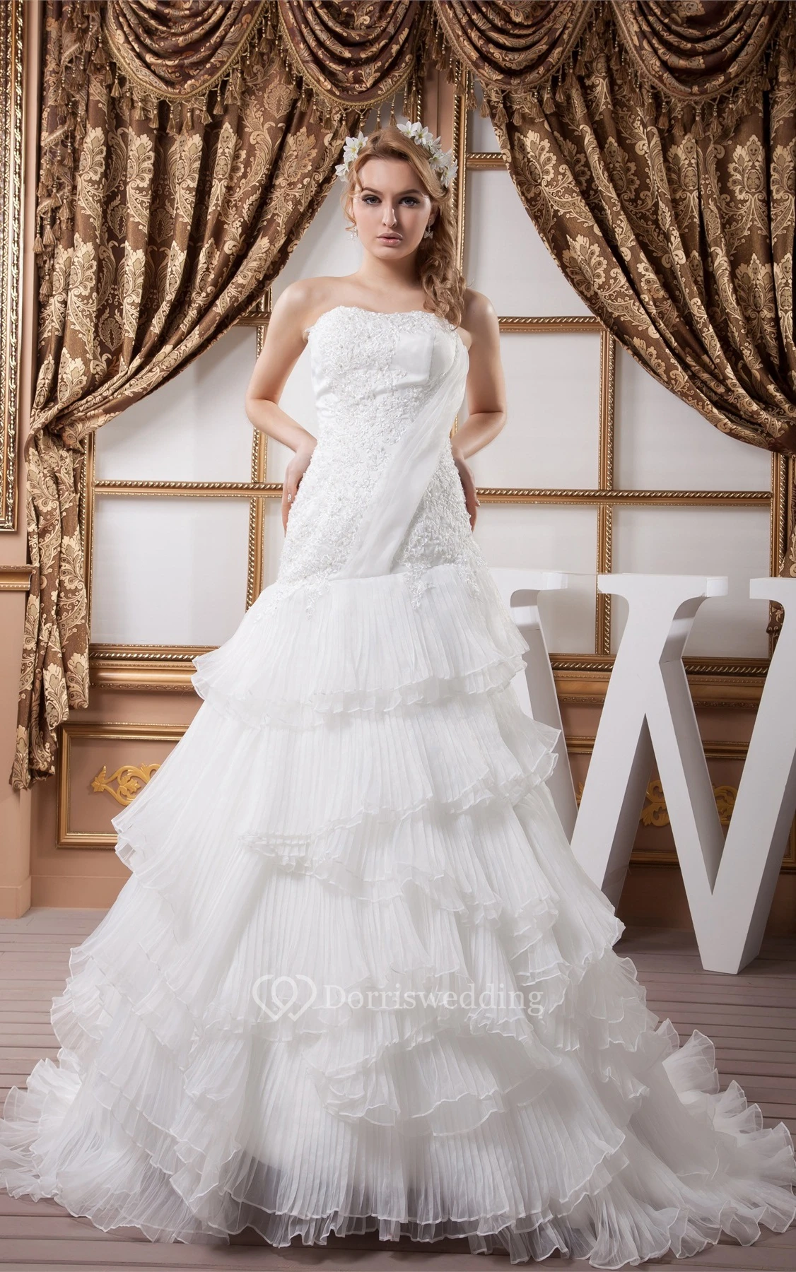 Sleeveless A-Line Ruffled Appliqued Bodice and Gown With Pleats