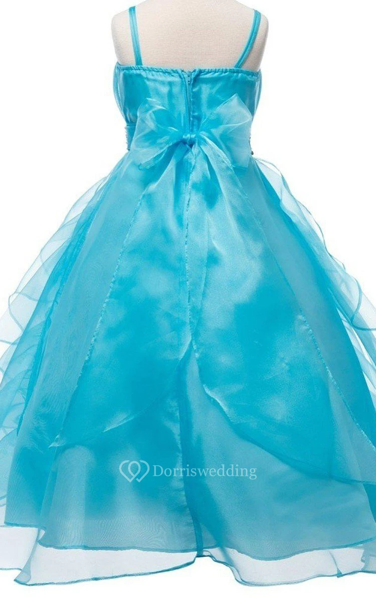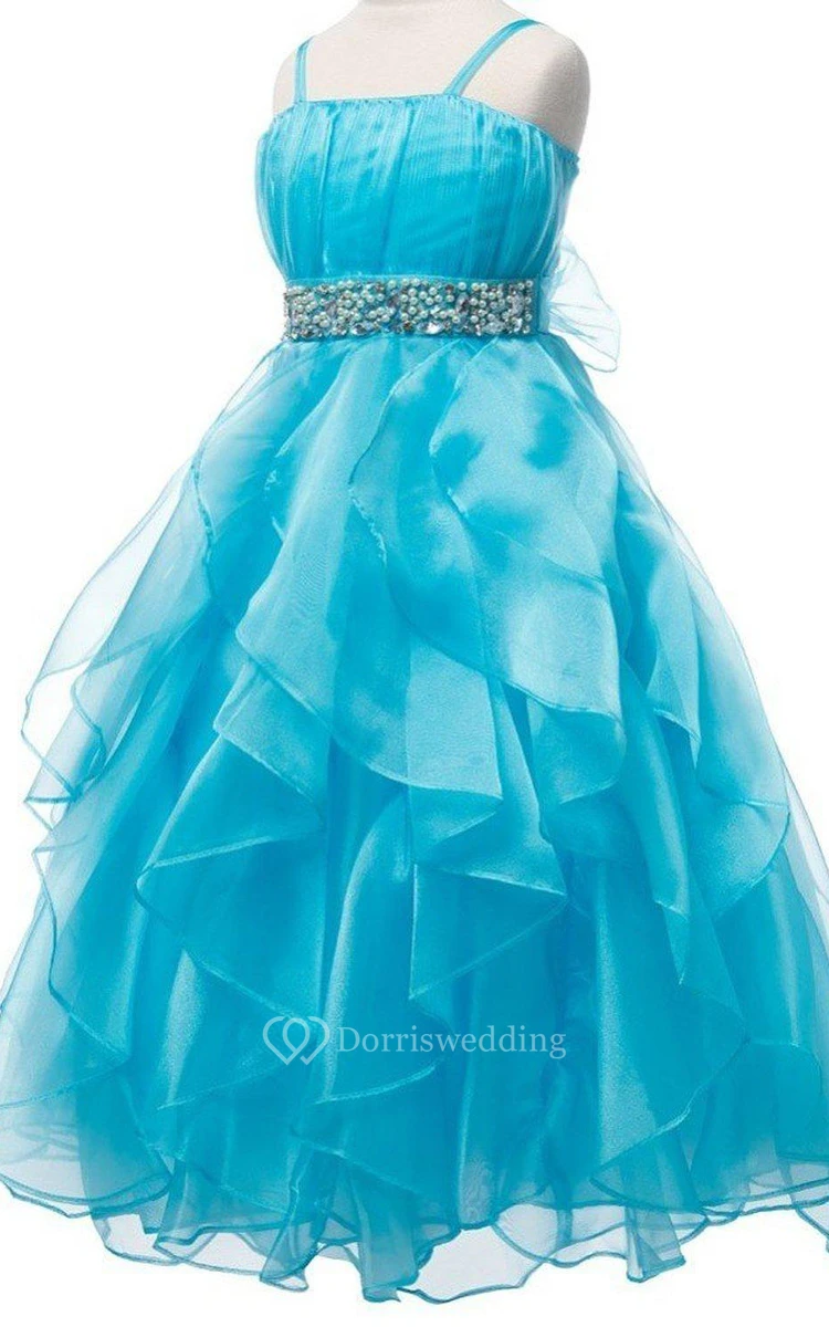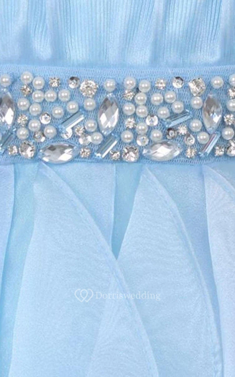 Sleeveless A-line Ruffled Dress With Beadings