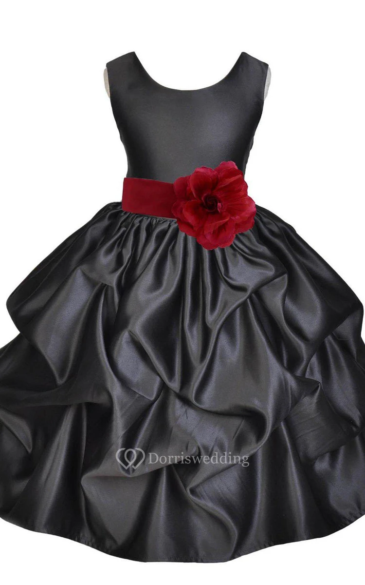 Sleeveless A-line Ruffled Dress With Flower and Bow