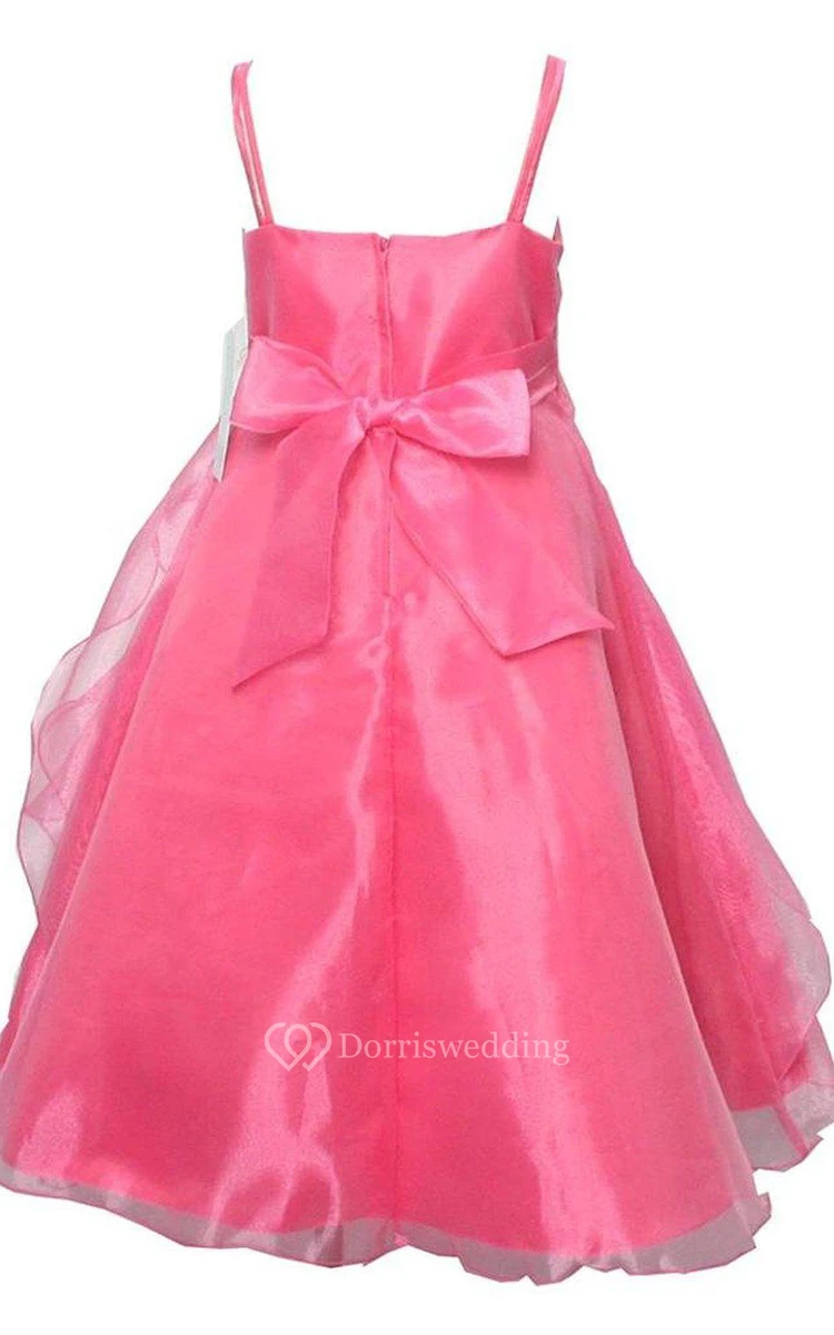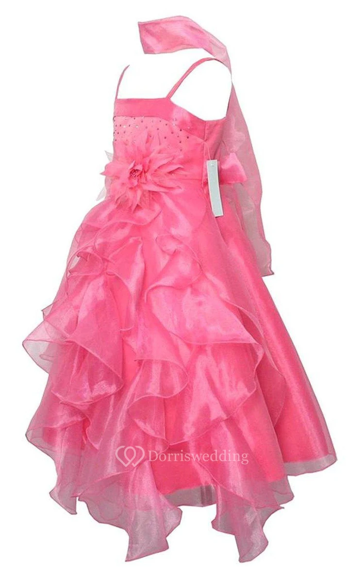 Sleeveless A-line Ruffled Dress With Flower and Straps