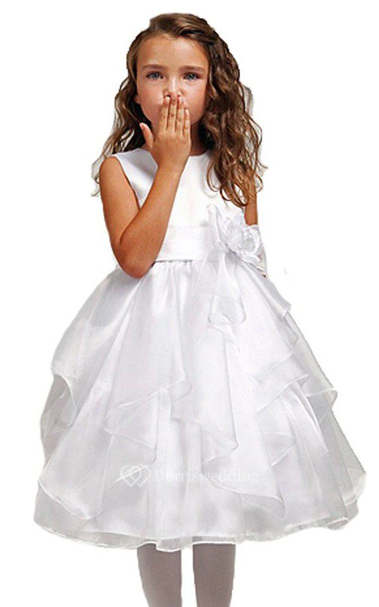 Sleeveless A-line Ruffled Dress With Flower