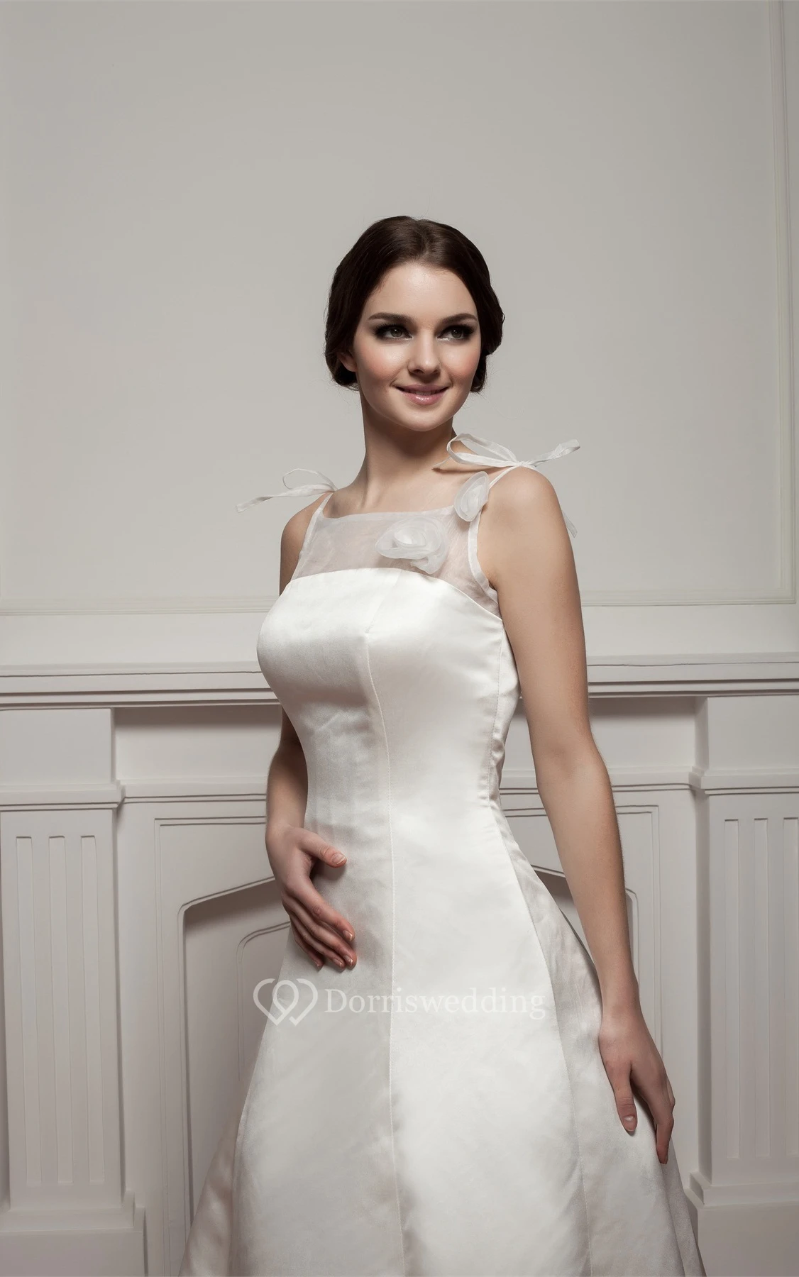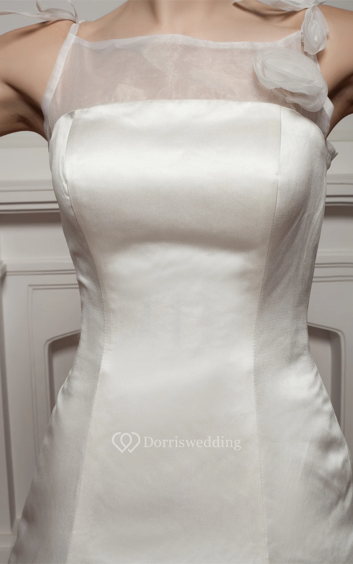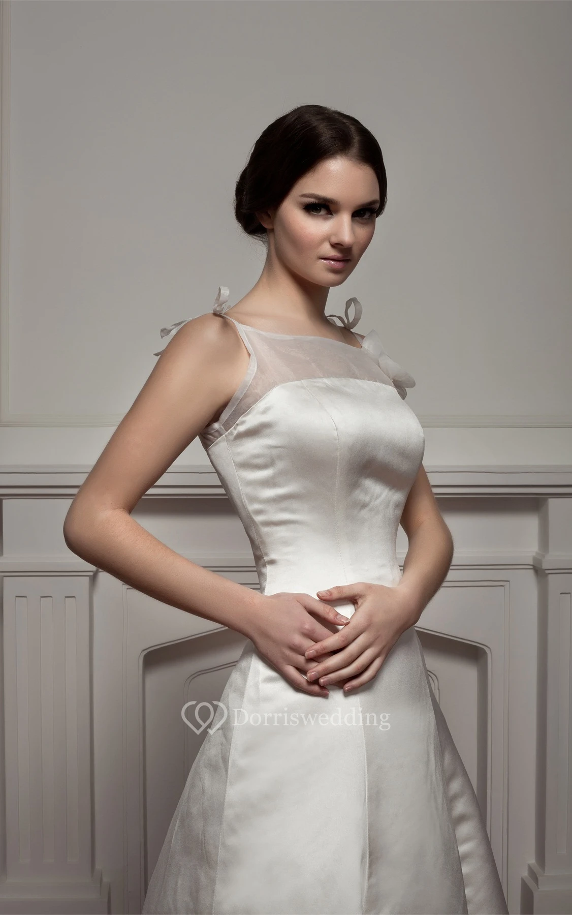 Sleeveless A-Line Satin Gown With Illusion Neckline