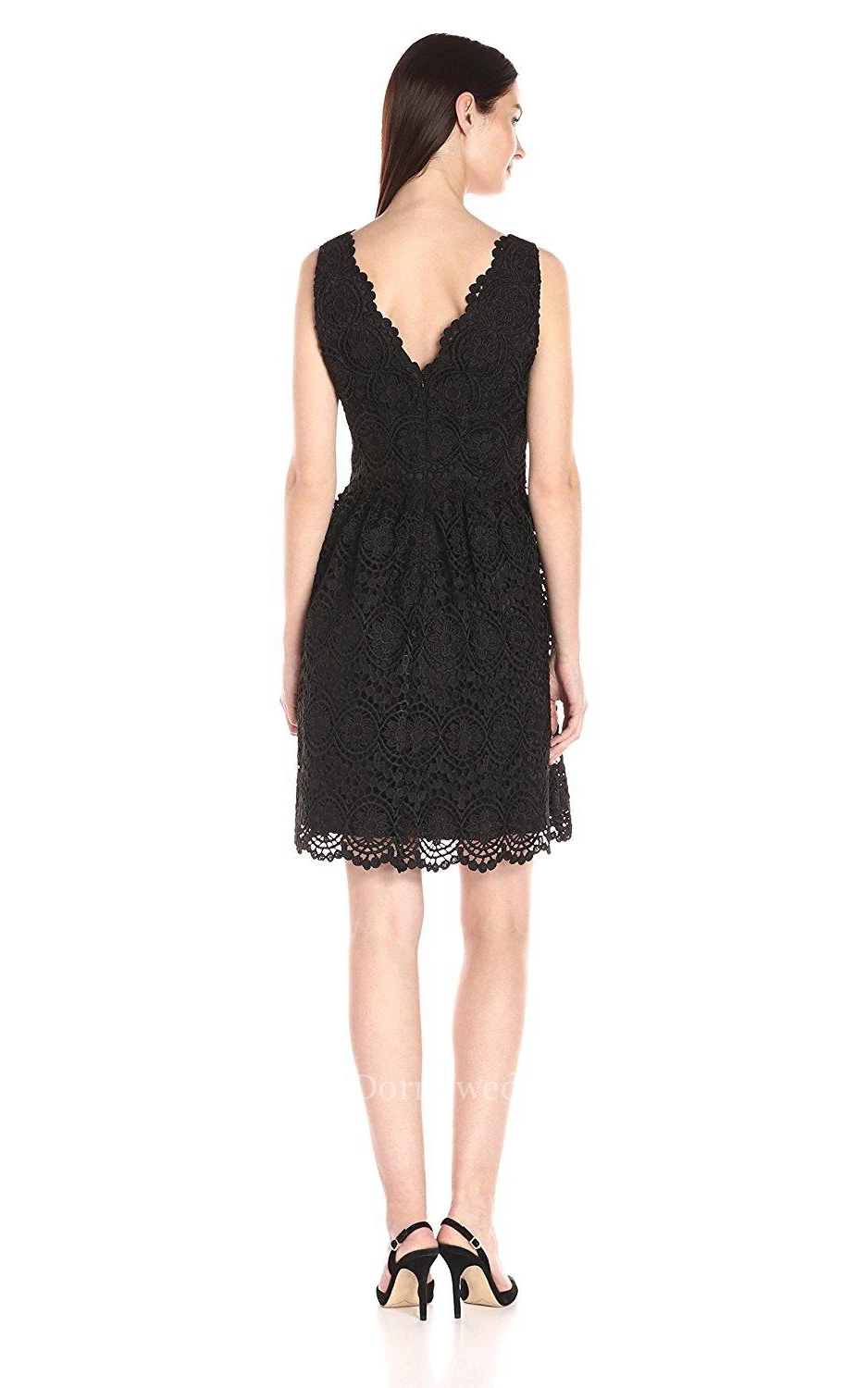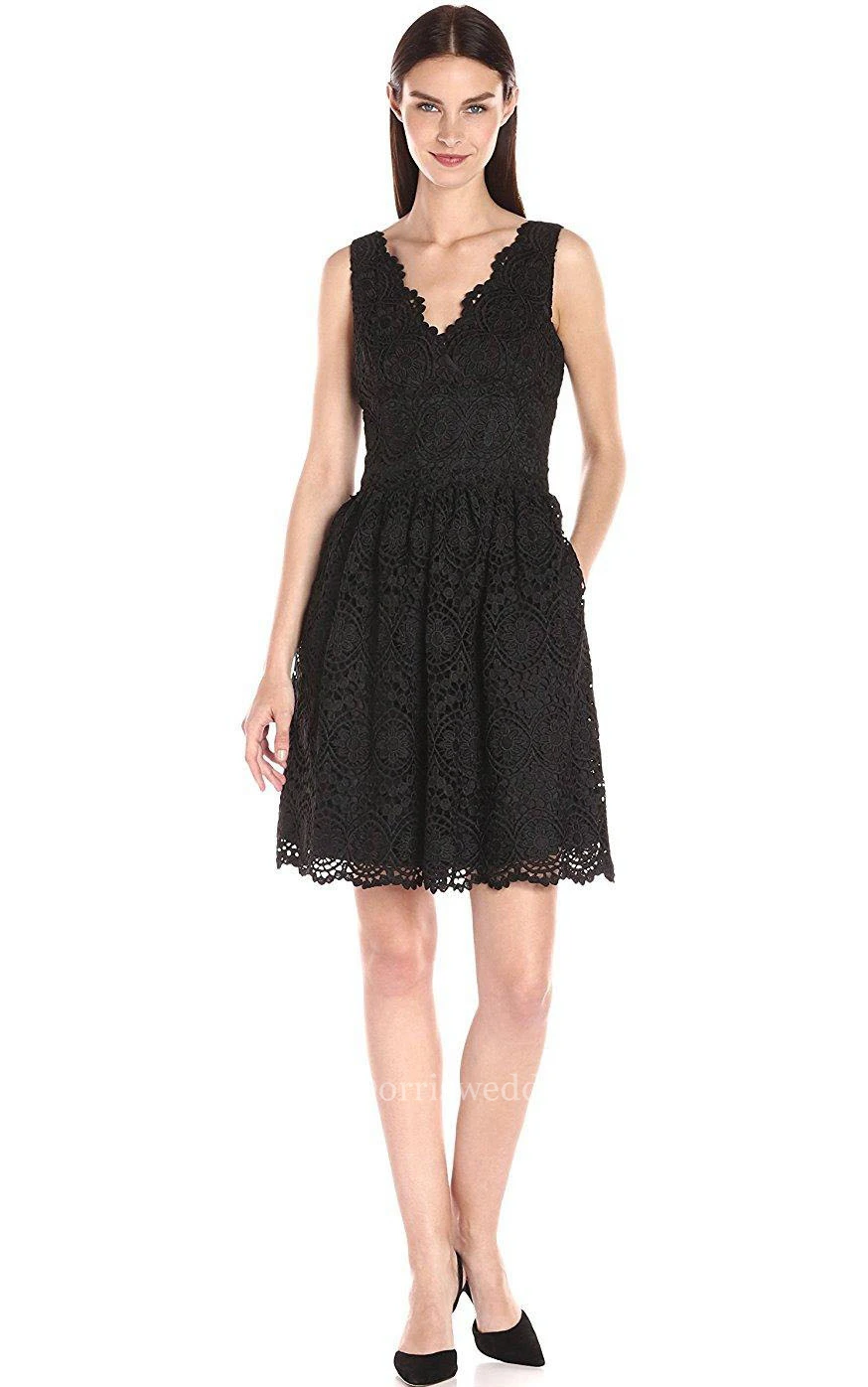 Sleeveless A-line Short Mini Lace Dress with Pleats and Pockets