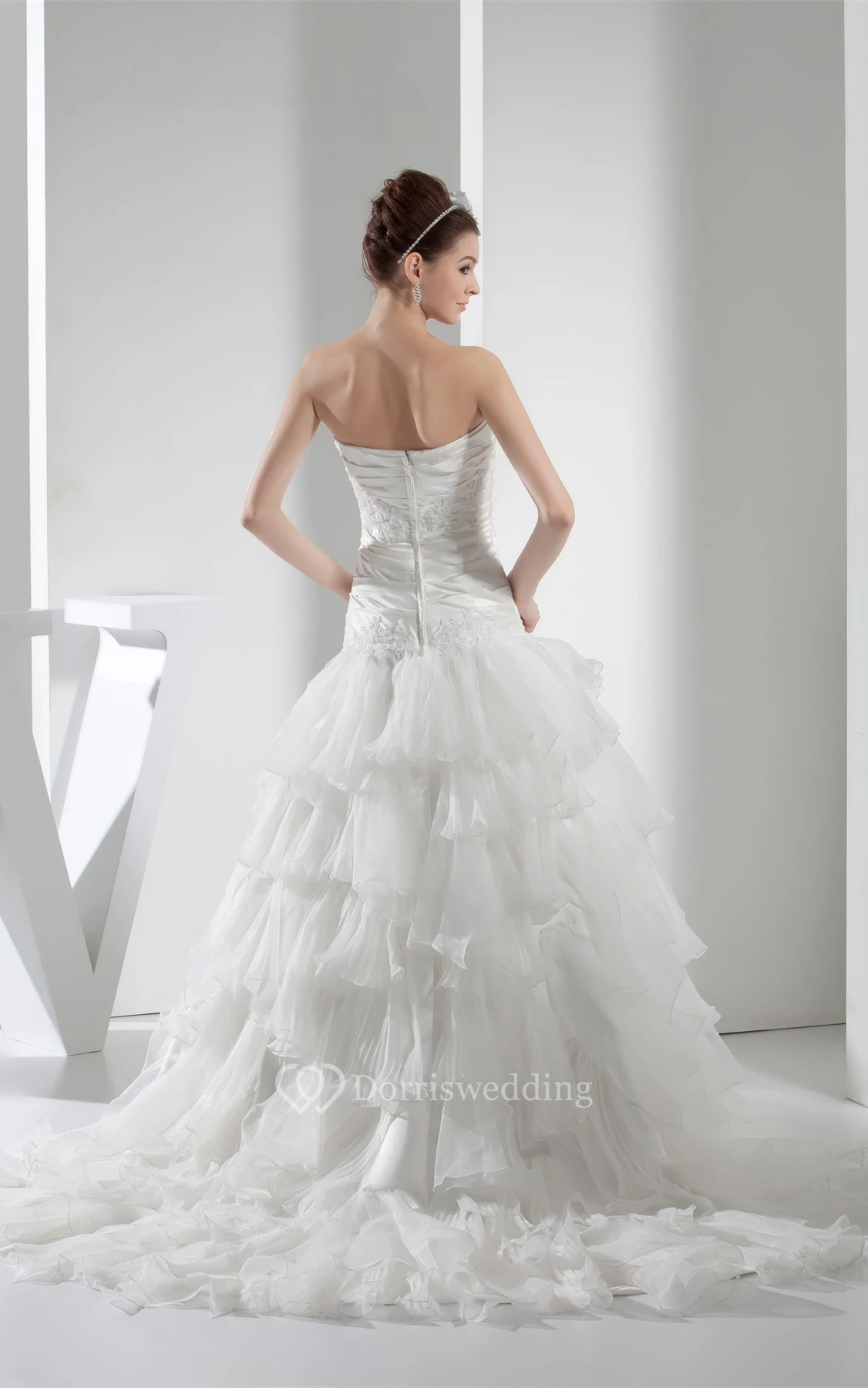 Sleeveless A-Line Tiered Appliques and Ball-Gown With Bow