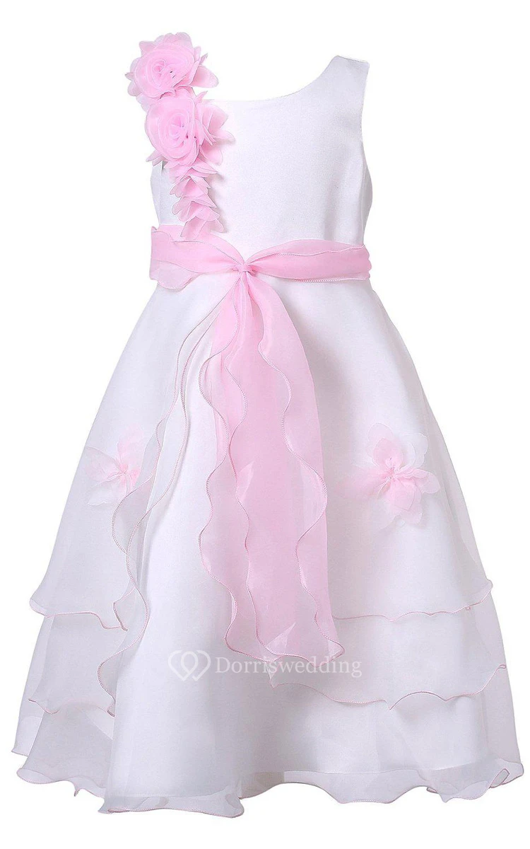 Sleeveless A-line Tiered Dress With Flowers