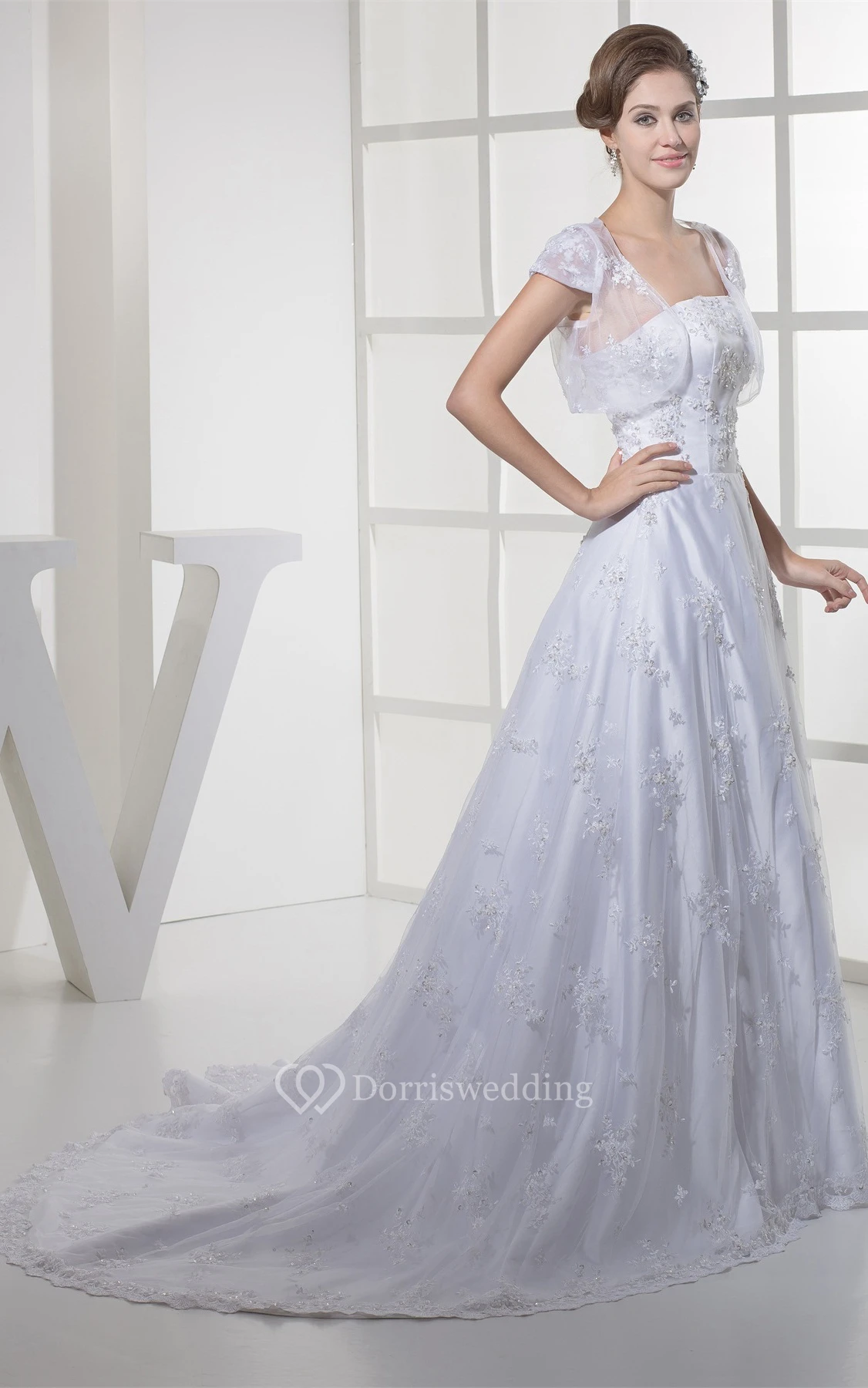 Sleeveless A-Line Tulle Bolero and Gown With Appliques