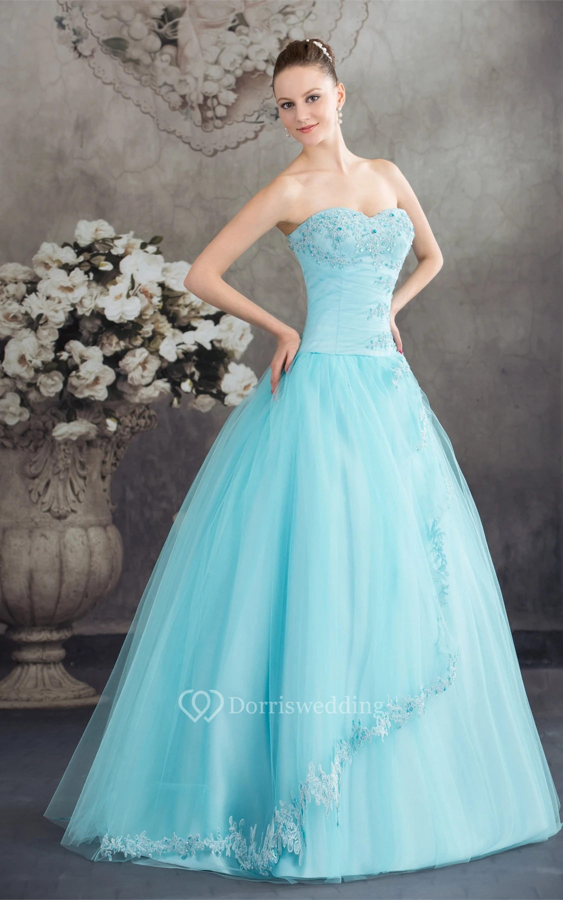 Sleeveless A-Line Tulle Corset Back and Ball-Gown With Beading